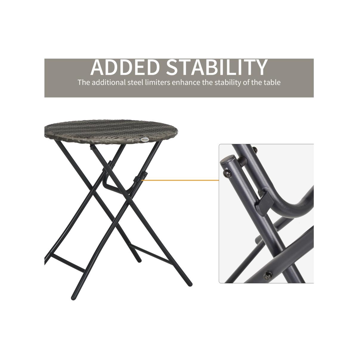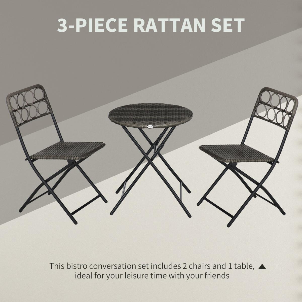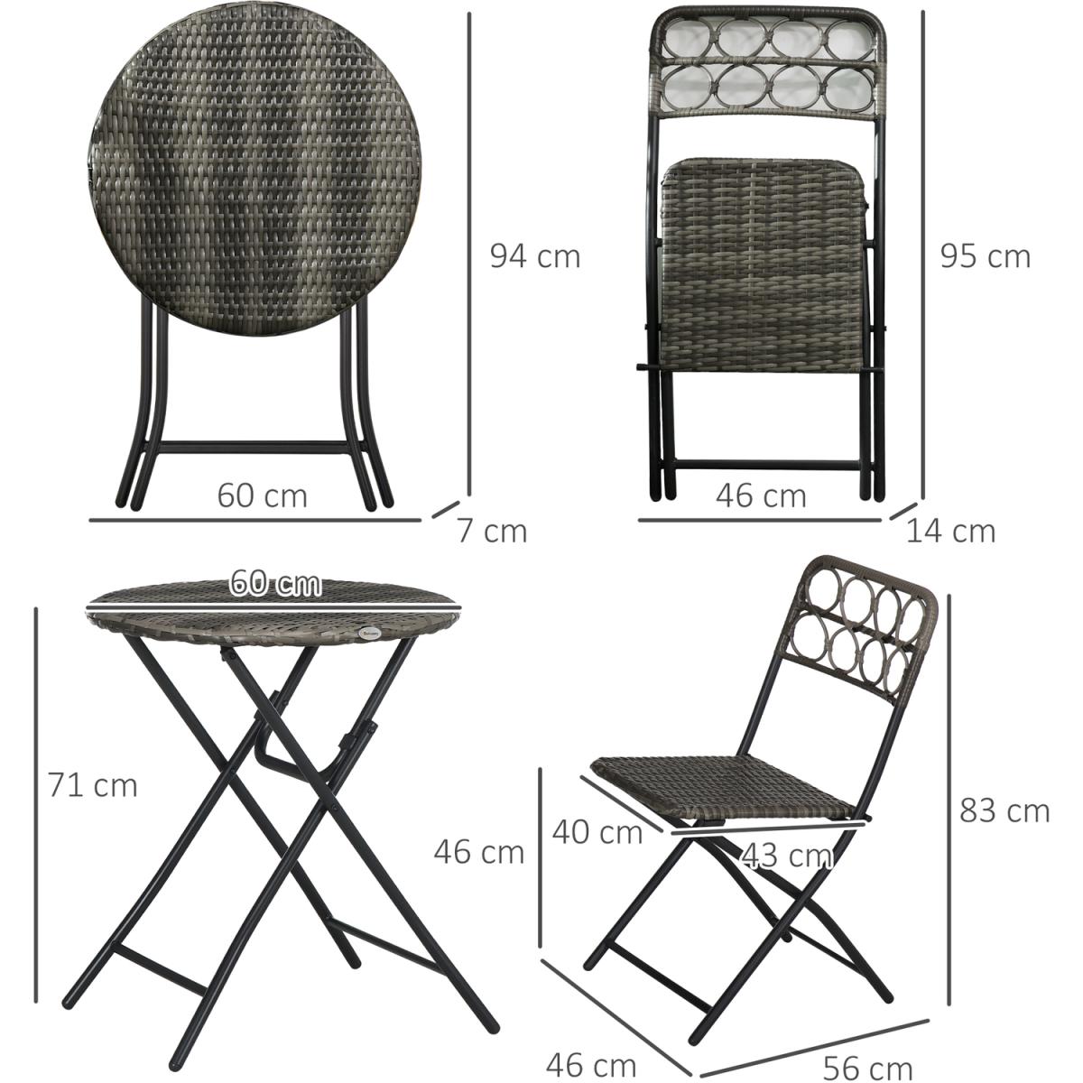 This Outsunny bistro table set also comes with two chairs relax with company outdoors. Strong metal frames, with plastic wicker for a beautiful look. All pieces are foldable - carry, move and store easily. A zero-fuss piece made for every outdoor space.
