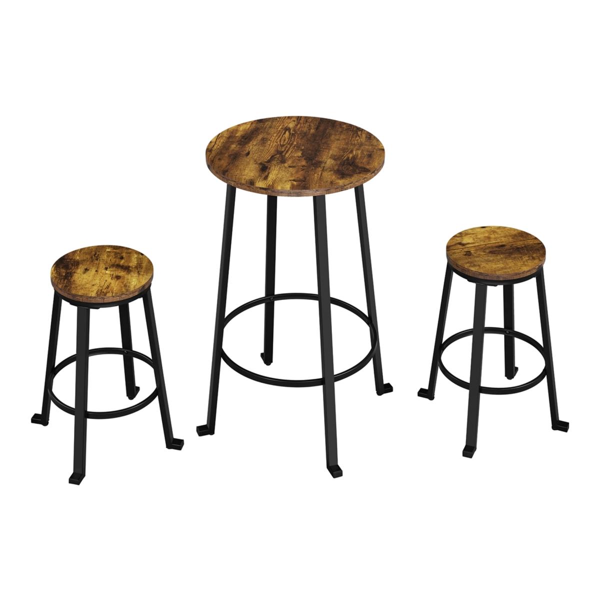 This 3-pcs bistro set is a rustic addition to any dining room or kitchen. Our rustic-style bar table and stool set features a strong metal frame with a powder-coated finish, paired with a durable MDF tabletop and seat. This set is built to last, with a table that can hold up to 90kg and each stool capable of supporting up to 136kg. Both the table and stools have circular footrests that make them more stable and provide a comfortable place for users to rest their legs. This pub table set adds a touch of industrial style to any of your living spaces.