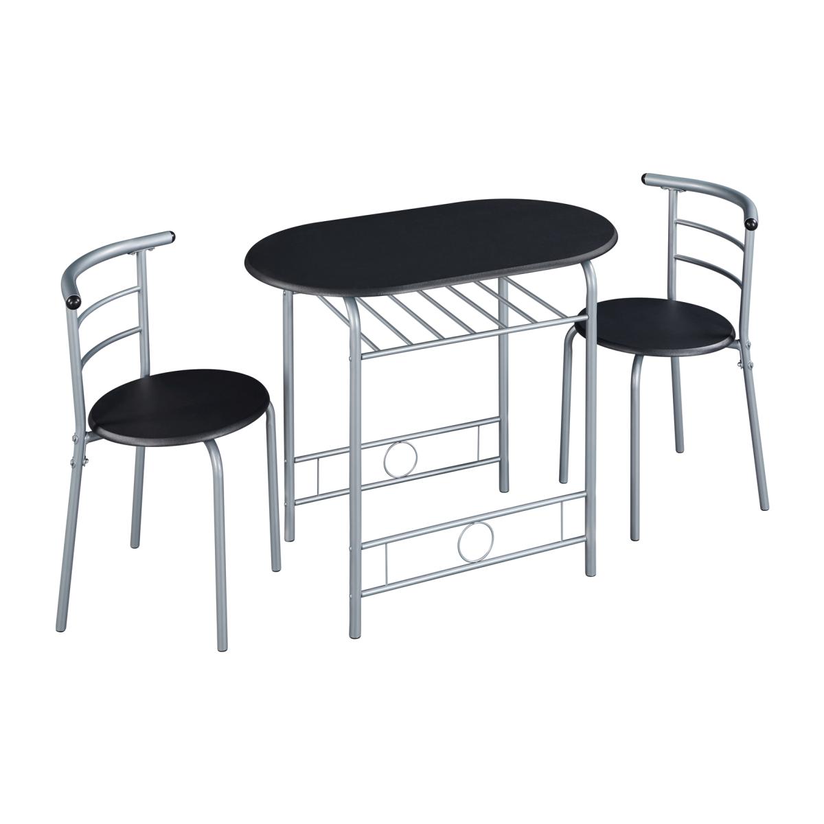 Create a cozy dining area with this practical dining table set. This set is made of premium CARB P2-compliant MDF boards and a metal tube structure, which is sturdy enough for years of use. Featuring a waterproof tabletop and powder-coated steel legs, daily maintenance will be super easy. Given 2 chairs, you can enjoy coffee or breakfast alone,with your partneror friend comfortably. When the chairs are pushed in, thiscompactdiningset takes up very little room, which is perfect for small spaces. This set showcases curved lines and round edges and gives you a relaxed and inviting feeling. The timeless colour scheme and small dimensions make this set perfect for kitchens, balconies, bedrooms, apartments, dorm rooms, offices, cafs, temporary activities, etc.