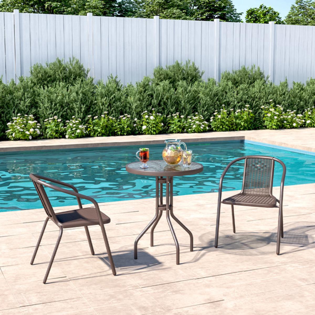 3 Piece Stacking Chairs Bistro Set - Brown / 2x Chair, 1x Non-foldable Table
