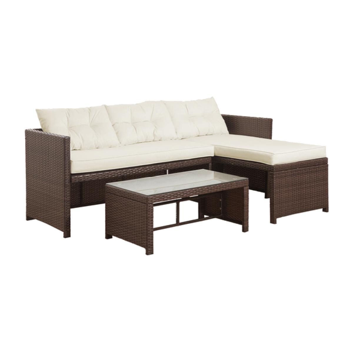 Teamson Home 3-piece wicker sectional conversation set with cushions in brown and white is a beautifully made compact set that includes an attractive coffee table. This dark rattan 3-piece set is exceptionally made with intricate woven rattan that is PE protected and water-resistant. The set contains 1 comfortable sofa that has armrests and a deep cushion area, with complementary cushions. The set also comes with a coffee table which had tempered glass and is a rectangle in shape providing ample space for guests to place glasses, plates, and much more! Lightweight and easy to store, the ingenuity of this set is that everything can be stored together in a stackable fashion.