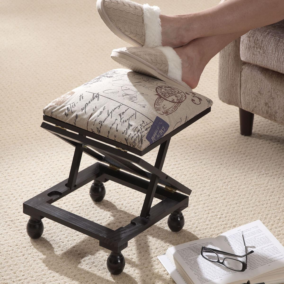 This attractive 3 Position Foot Stool is made from solid wood and MDF sections with a printed polyester fabric covered padded top. It is available with either a modern white or traditional mahogany finish. Factory assembled frame and supplied with screw-in turned wooden bun feet with protective pads affixed to base. Adjustable supports allow a choice of height positions to maximise your comfort.