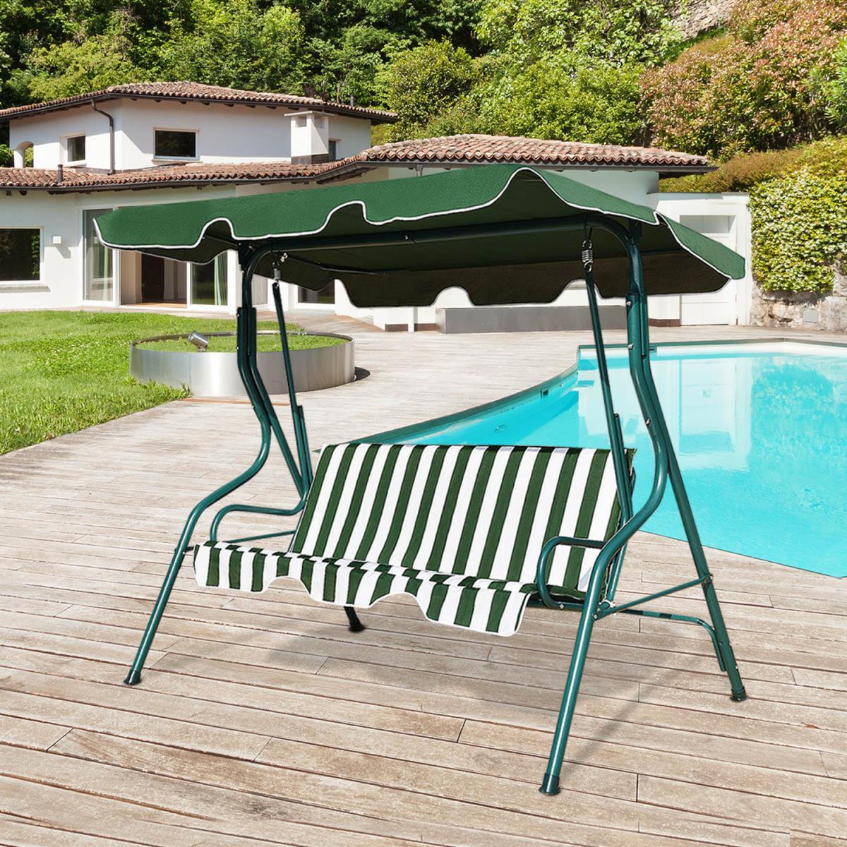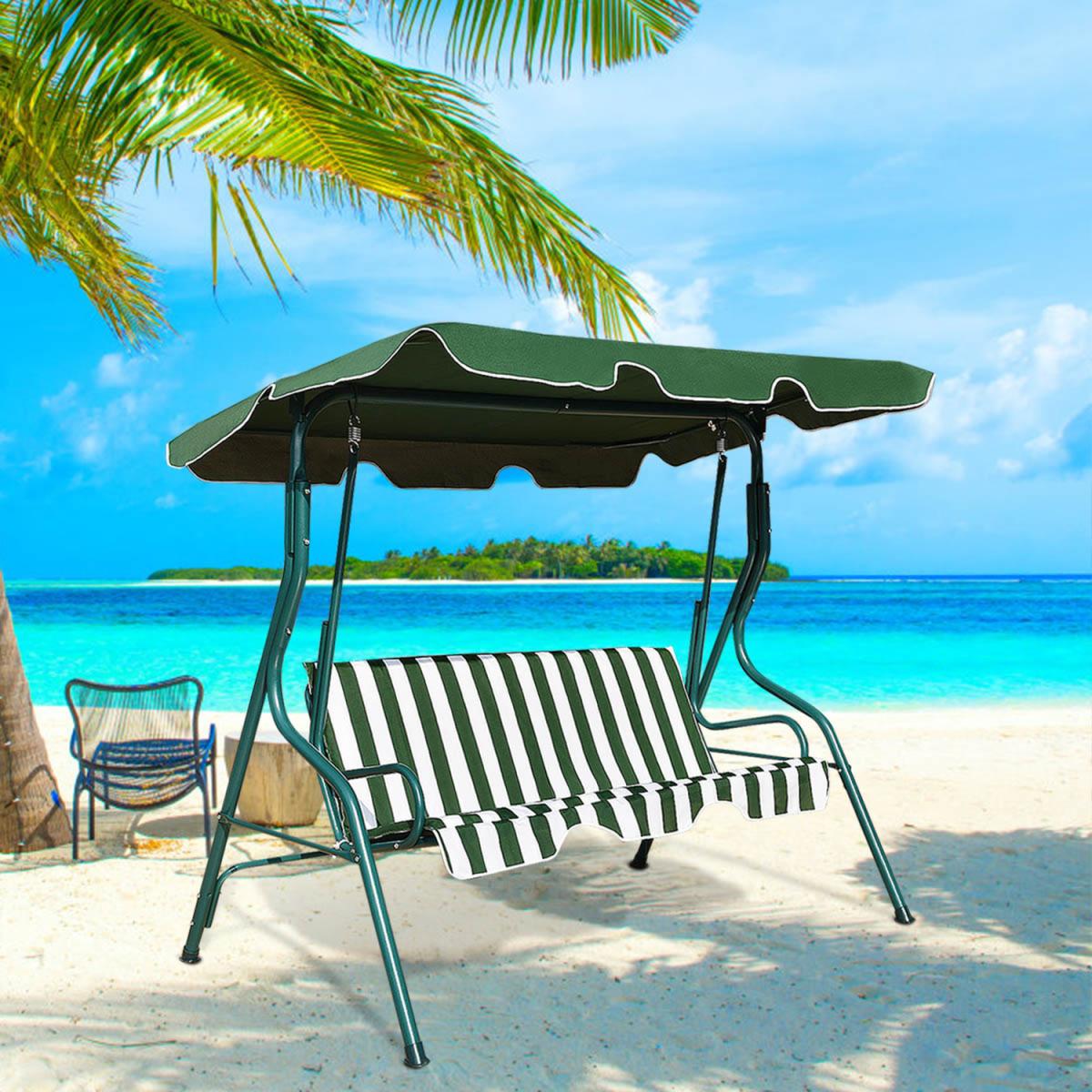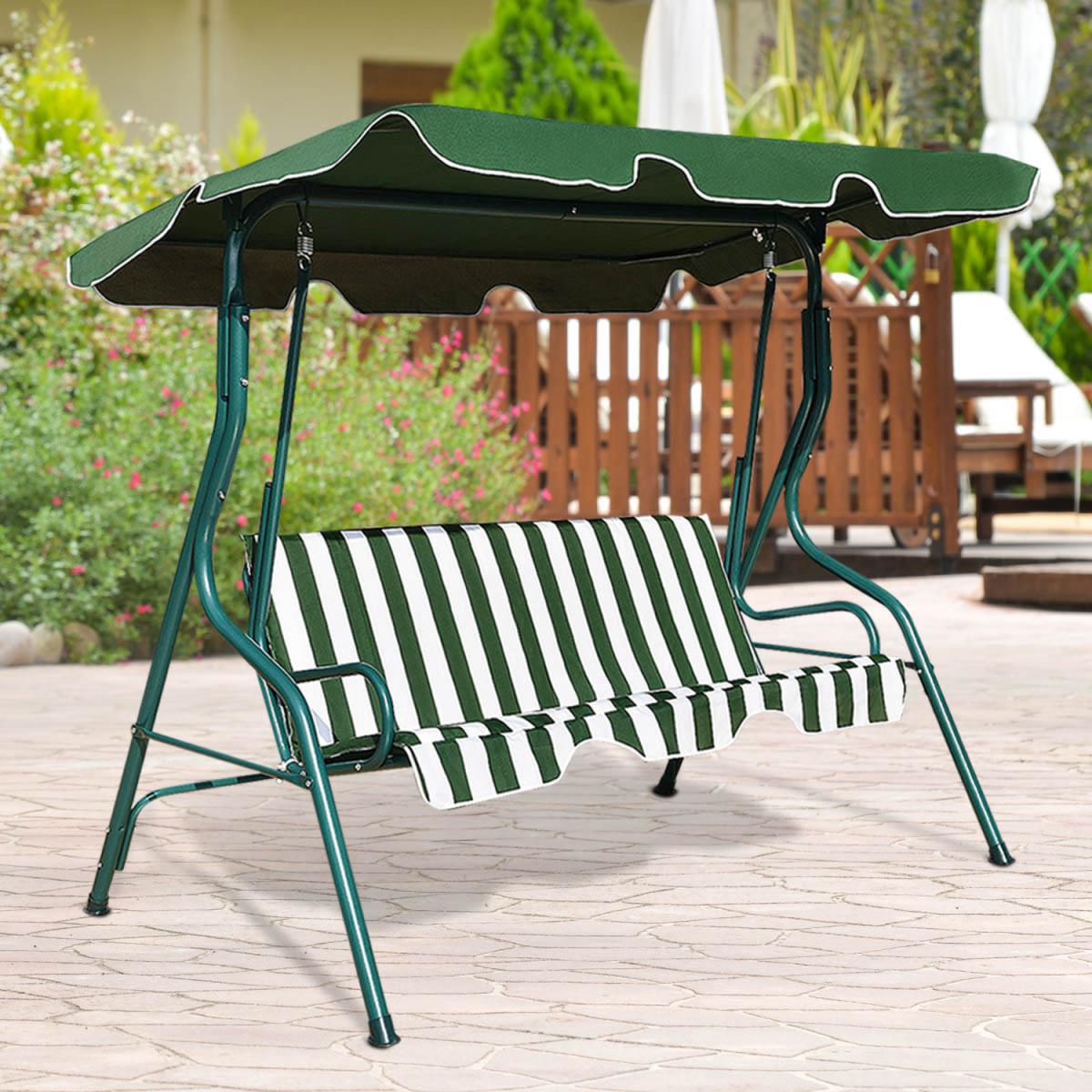 Our 3-seater swing chair is made of heavy-duty steel frame with an adjustable canopy on the top to provide optimal shade coverage. The canopy can also be disassembled, which is convenient for daily cleaning and maintenance. This seat, full of breathable and high-density foam, is spacious enough to accommodate 3 people, so you are even able to lounge in the shade on this swing and read a magazine. Designed for ultimate comfort and style, it allows you to gently sway in the breeze and enjoy the good weather with family and friends. Don't hesitate to let this swing chair add a touch of elegance to your garden or backyard!