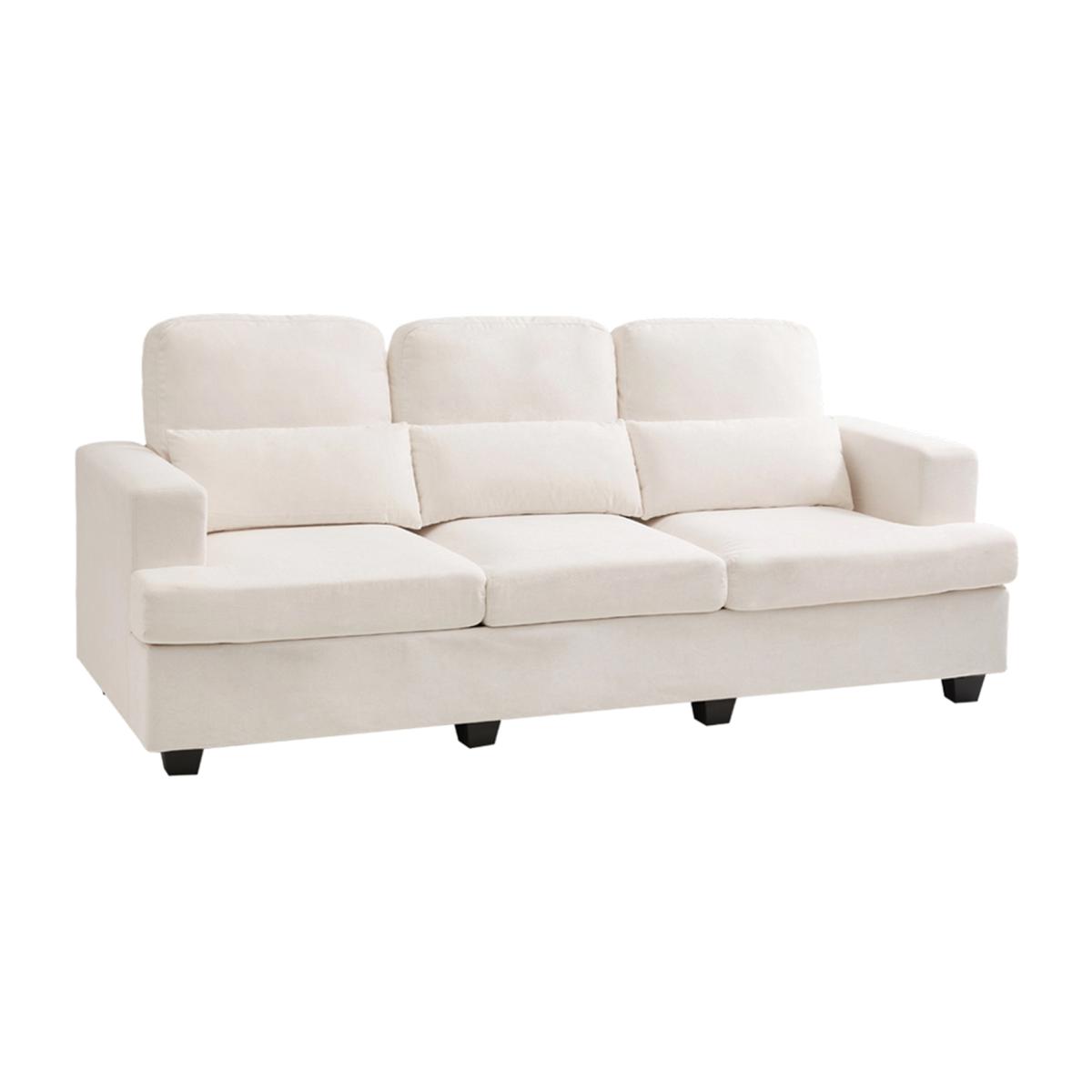 3-Seater Chenille Upholstered Sofa with Pillows - Beige