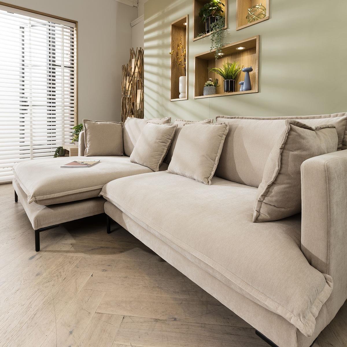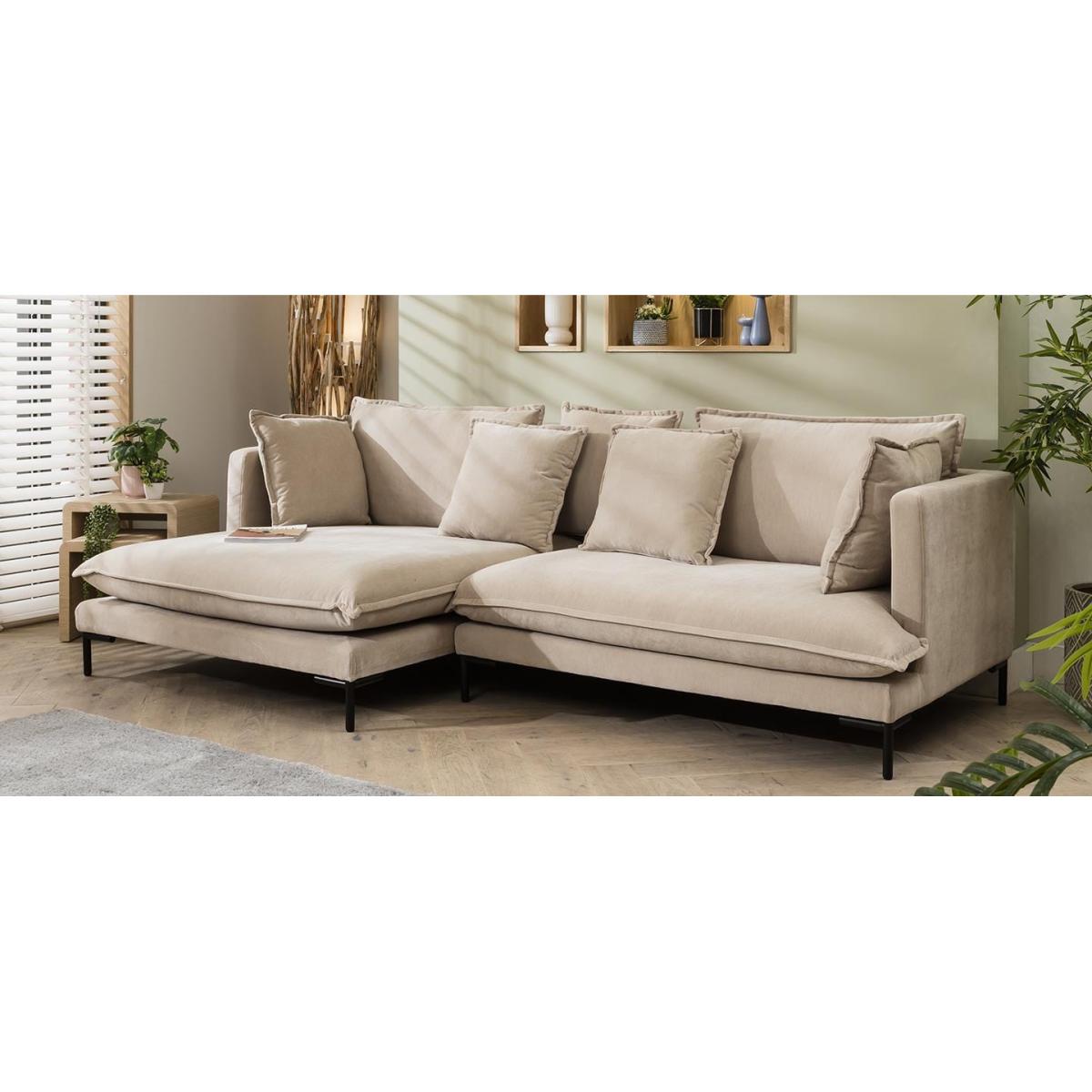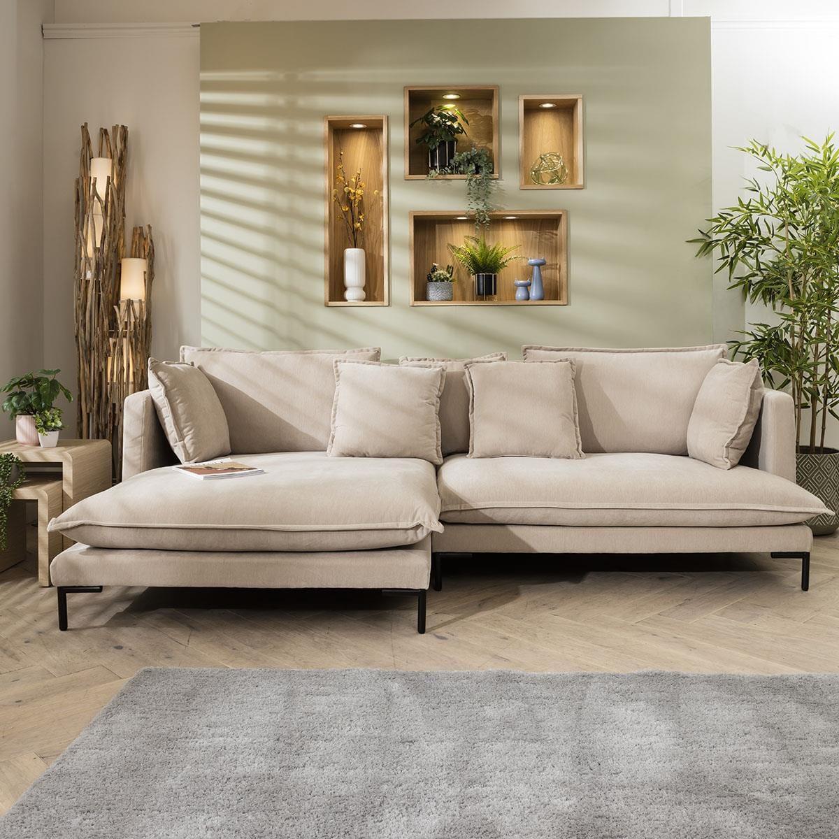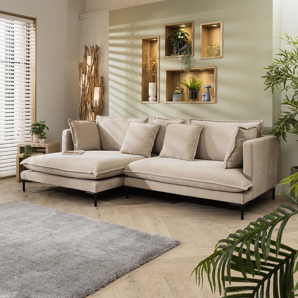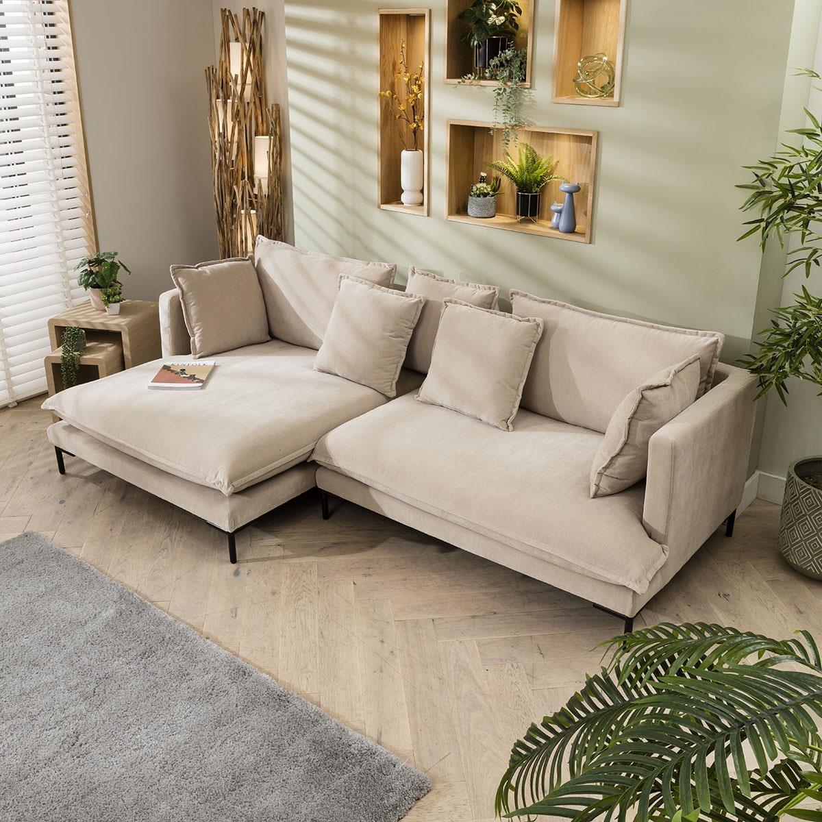 The Tucson premium 3 seater sofa, a modern addition to your living space that seamlessly combines style and comfort, covered in a premium sand coloured woven fabric - an elegant shade of beige. Designed for luxury comfort, this modern three-seater small L-shape corner sofa with a chaise has super soft cosy cushioning. The luxurious cushioning with a sophisticated flange edge finish offers a plush and inviting seating experience, making it the perfect spot to unwind after a long day. Scatter back cushions provide both aesthetic charm and extra comfort, allowing you to customise the look and feel of your sofa. Elevate your living room with the contemporary touch of the modern black metal legs, providing both stability and a sleek, on-trend aesthetic. The beige sand premium fabric upholstery not only exudes elegance but also ensures durability, making this sofa a long-lasting investment for your home. Upgrade your living space with the Tucson small 3 seater corner sofa, where style, comfort, and quality come together in perfect harmony. W263cm D138m H88cm Seat Height 46cm, Seat Depth 65cm, Seat Back Height 46cm Arm Height 71cm, Arm Width 9cm, Floor to Base 15cm