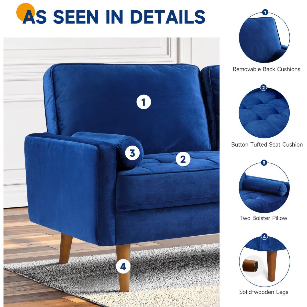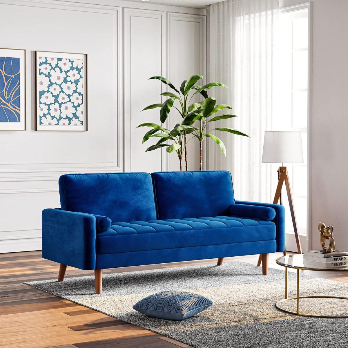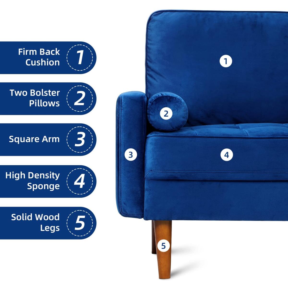The smooth and simple lines of our loveseat sofa combine with the wooden legs, the velvet material with classic shapes and details to make the couch modern and minimalist. inexpensive small 3-seater couch is perfect for your temporary furniture change, available in three colors and three options for small apartment configurations, living rooms, offices, dorm rooms and bedroom furniture. The couch for living room uses a high-density sponge to fill the seat and armrest, skin-friendly fabric, soft cushions and reinforced back, eases the rebound to provide ou and your family strong comfort. what's more, the width of the sofa is enough for three adults to sit together without worrying about its size. It is a good tool to rescuing from fatigue!At present, the quality of most sofa cannot be reach Level A, so the quality of the materials applied to our products are A+ grade in order to ensure stable, firm, safety and not easy to shakeand. loveseat sofa is made of velvet with a hardwood frame as the basic structure which is durable and easy to clean. The hard wooden frame can better support anyone and let you enjoy a comfortable life. After 100,000 press tests, 3-seat sofa has no deformation. It can be support weight up to 700 lbs.