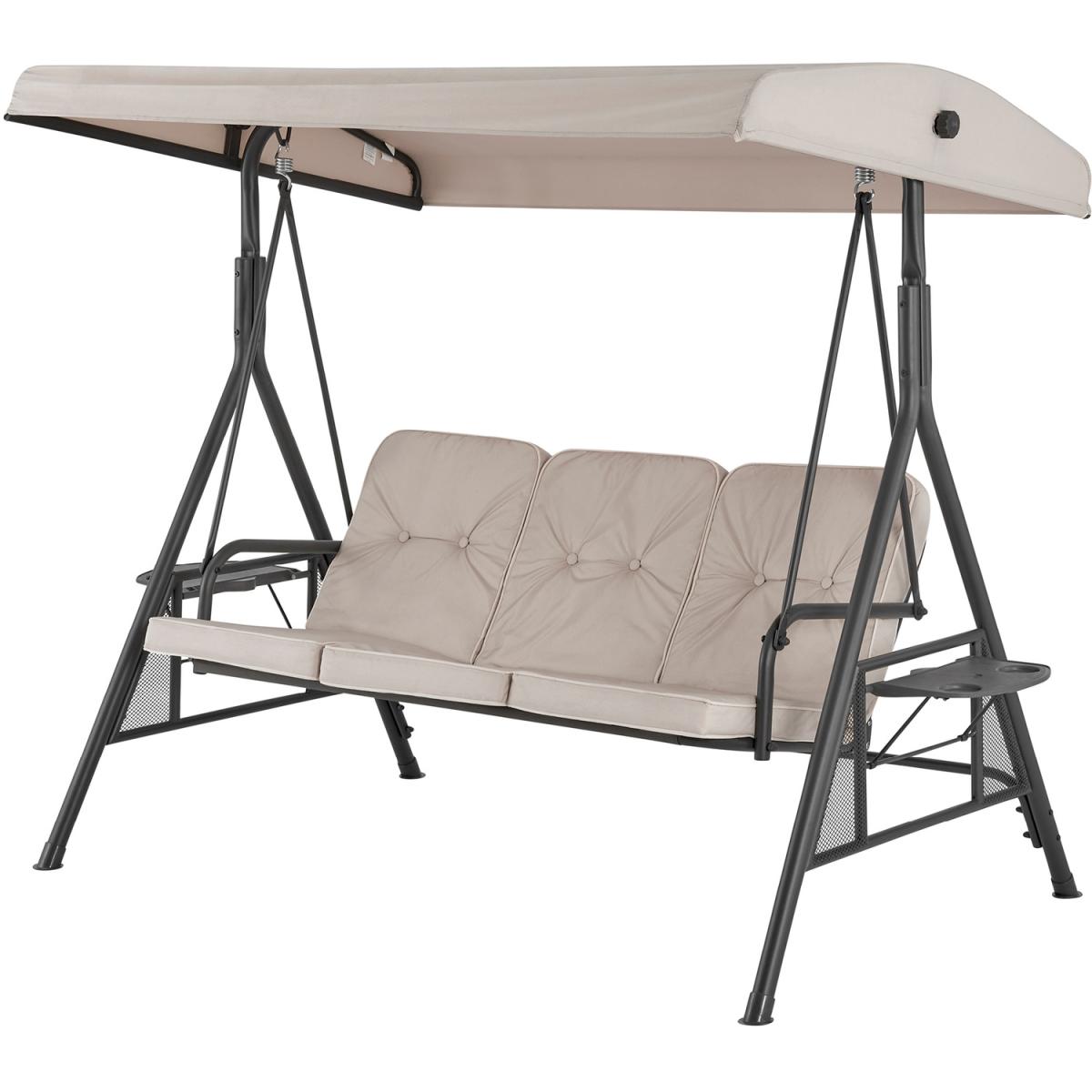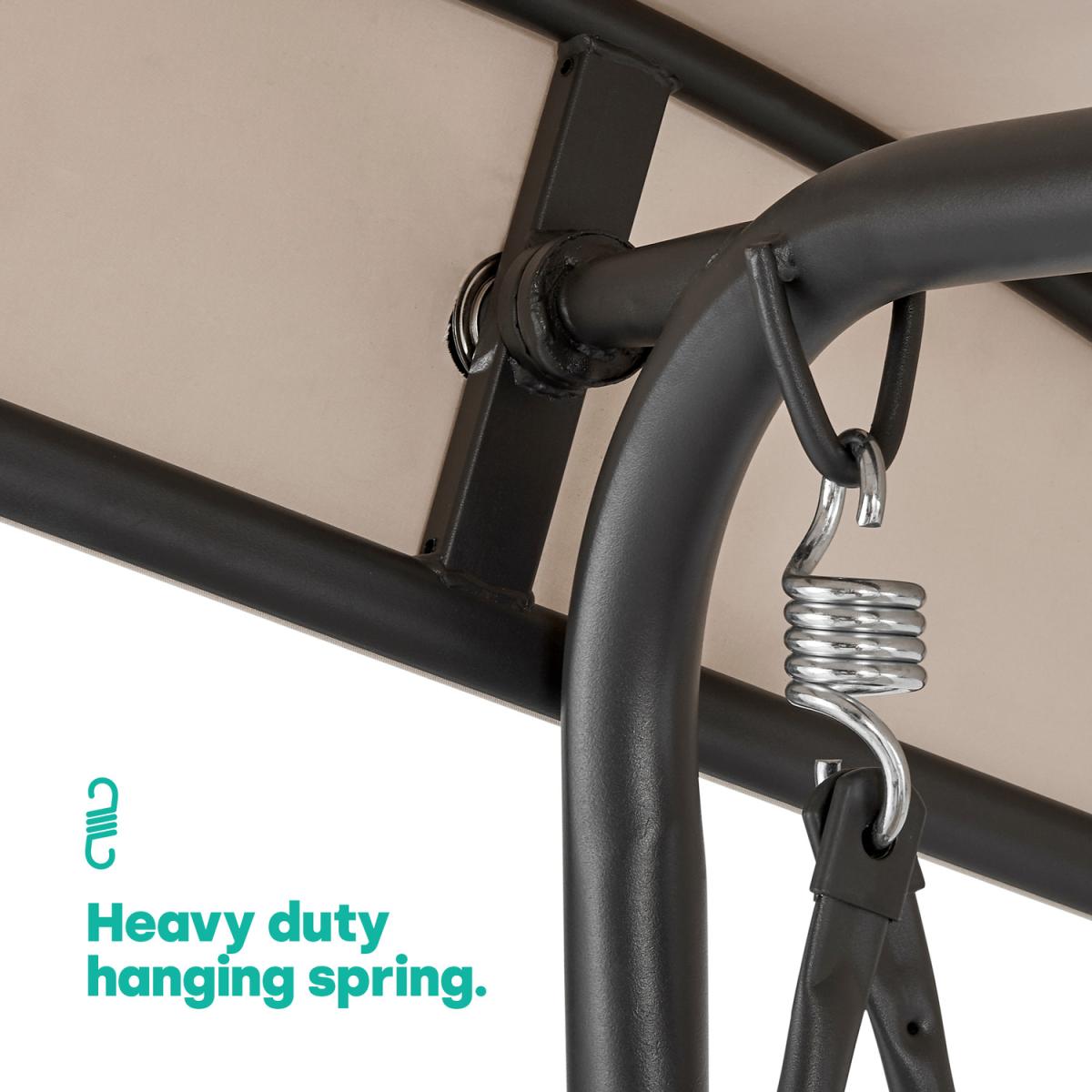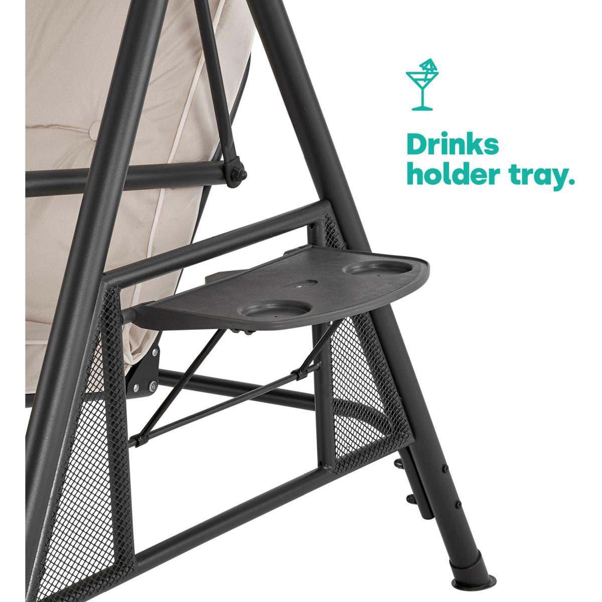 Switch off, sit back, and engulf yourself in the LIVIVO Florence 3-seater swing chair. The remarkable chair provides the perfect experience to live in luxury and gives you the well-deserved break needed. The soft padded cushions provide comfort to make you feel relaxed and enjoy your time on the swing chair. The extra room allows you to sit closely with friends and family and something for the kids to enjoy. The LIVIVO swing chair features a sleek powder-coated steel frame and robust fabric. The contemporary design is a statement piece within the home or garden. The chair comes with a canopy which provides direct shade from the sun, and offers protection from light showers while promoting air flow from all angles. During the cold seasons, you can place the chair indoors and snuggle into the warmth and comfort provided by the plush cushions.