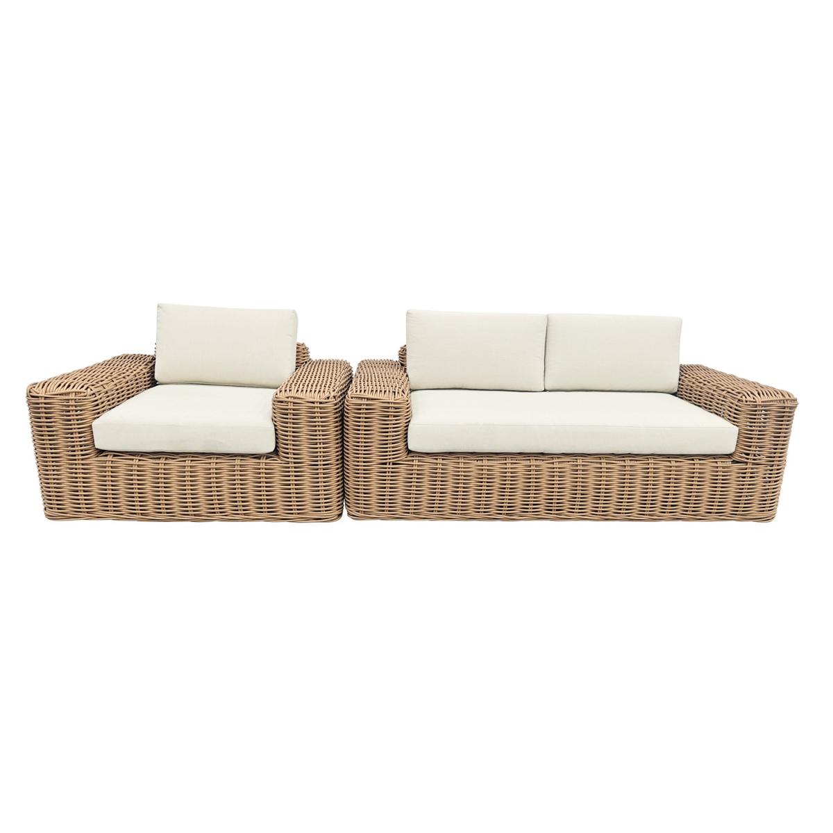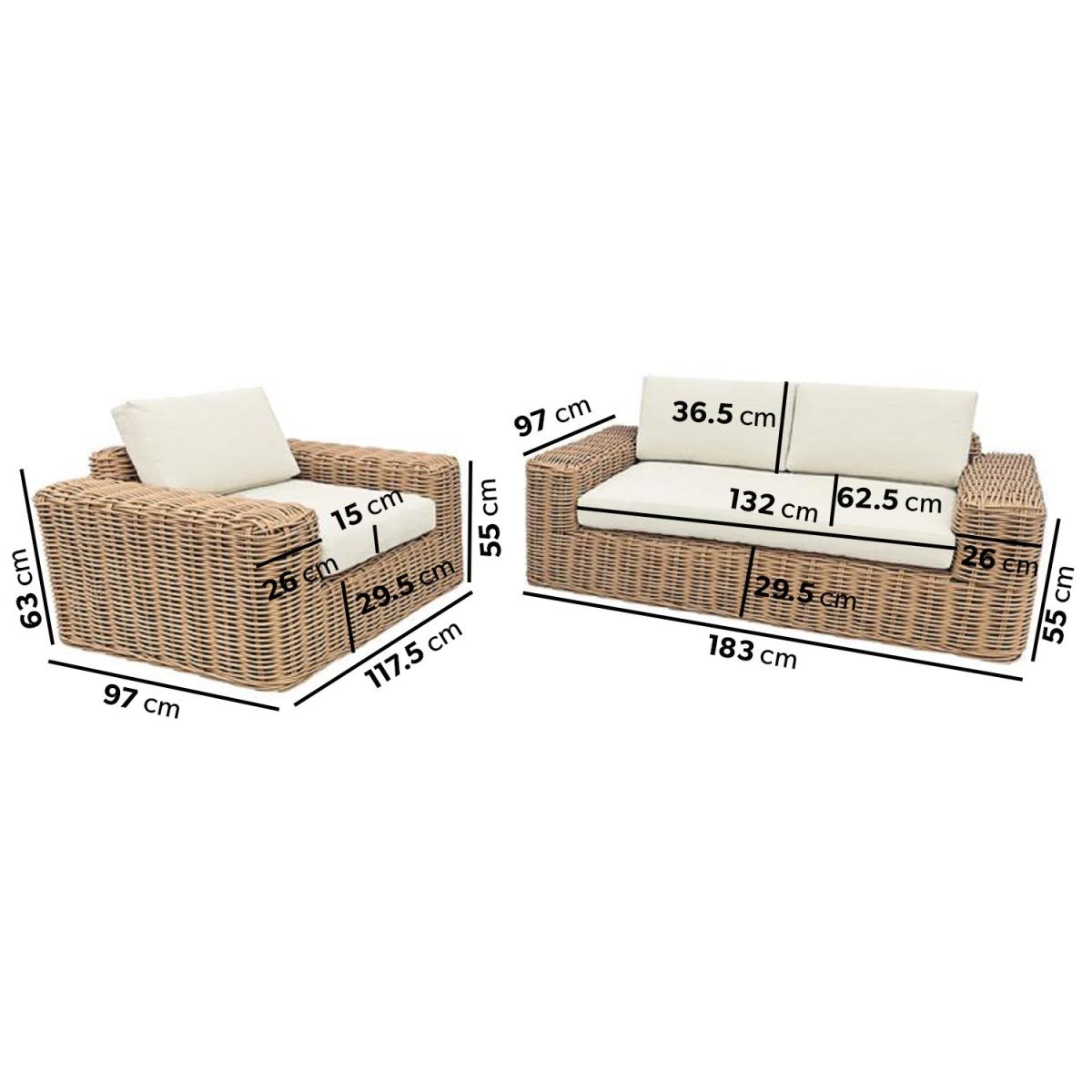 Low-maintenance and built to withstand the elements, ensuring year-round durability. Thick, supportive cushions with washable zip-off covers are easy to maintain. Includes a generous-sized 2-seater sofa and a roomy armchair to relax. Strong and stable construction designed for long-term outdoor use. It makes a striking and stylish addition to any garden, patio, or balcony. Upgrade your garden or patio with this luxury 3-seater natural rattan garden sofa set, designed for both comfort and durability. It includes a spacious 2-seater sofa and an armchair, making it ideal for entertaining a couple of guests or unwinding in style. Crafted from high-quality woven rattan, it combines contemporary style with practical functionality. The deep-filled, thick seat and back cushions provide superior comfort, while the low-maintenance materials ensure easy cleaning and long-lasting use. This corner sofa set is a must-have for any outdoor space. Plus, it comes fully assembled; you only need to put the cushions in place.