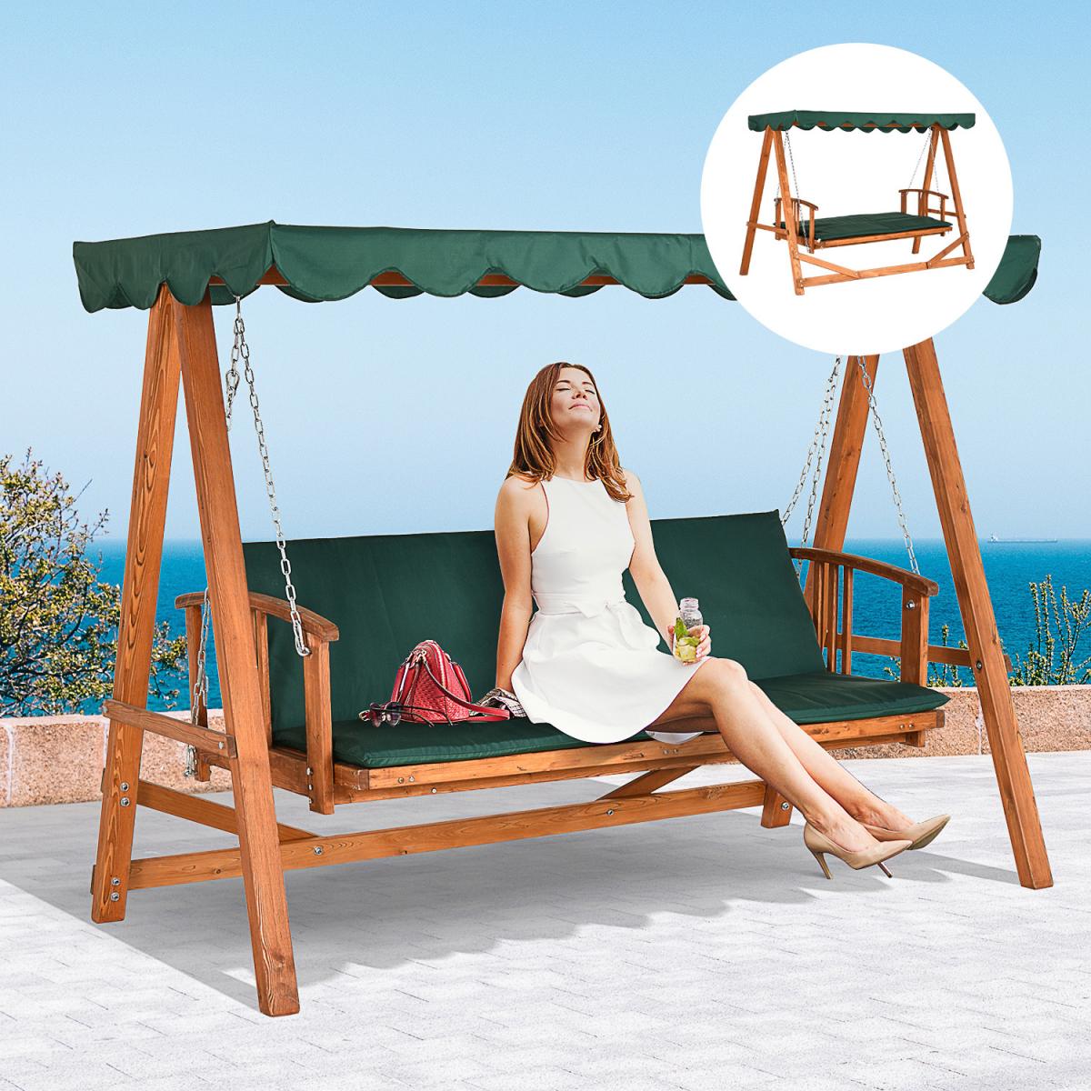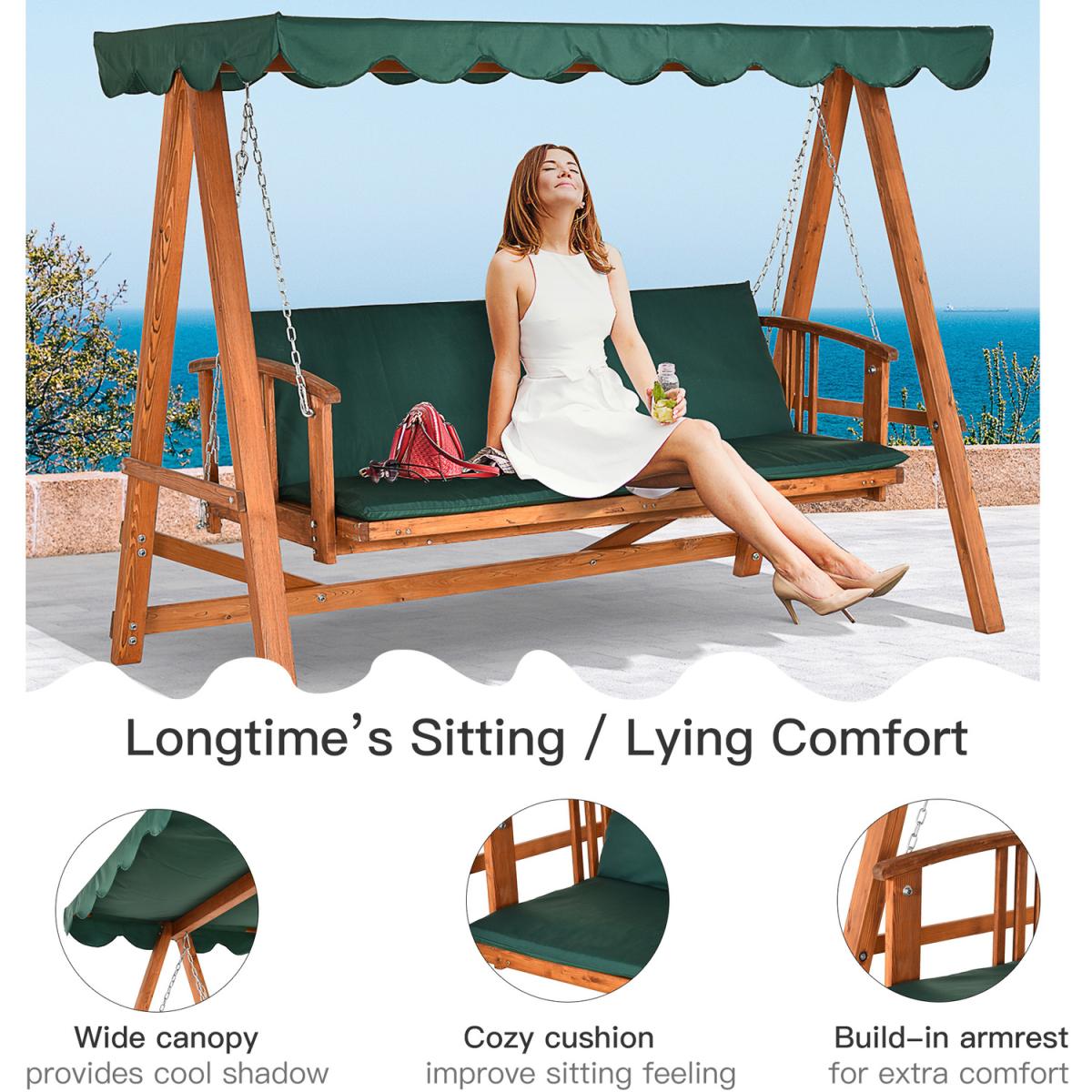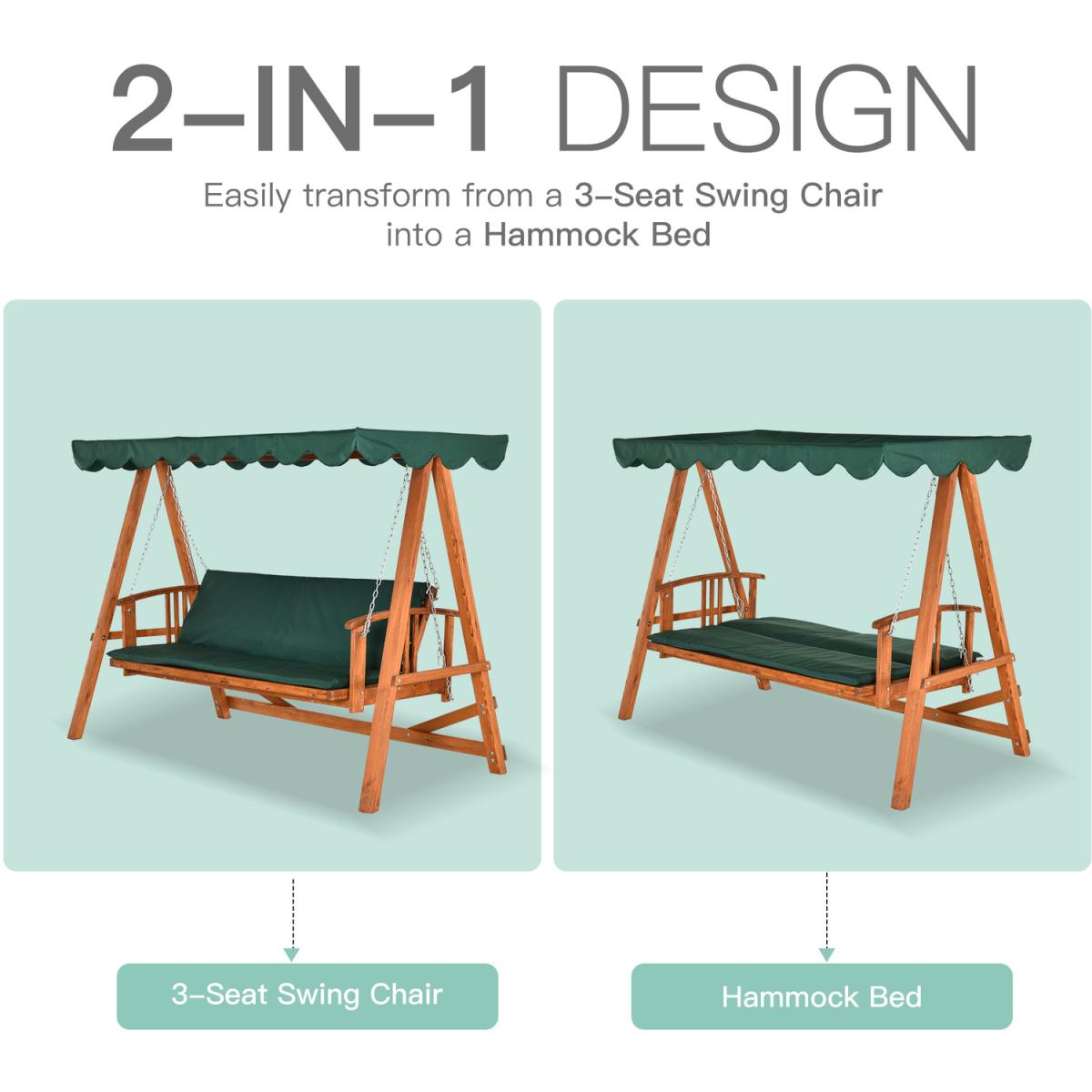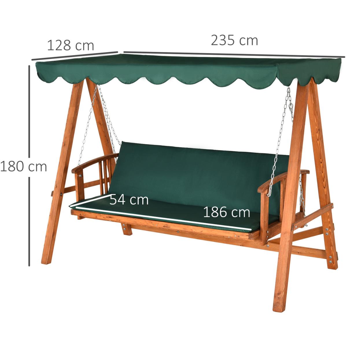 Relax the day away in style with this 2-in-1 three-seater swing chair from Outsunny. Crafted from solid larch wood, it is durable and sturdy, allowing it to be a mainstay in your garden and outdoor furniture for years to come. The painted finish makes it resistant to rotting, decaying and damage from insects and bugs. With a thick padded cushion and UV resistant canopy, you can get extra comfort. Finished with sturdy hooks to hang up, it is the perfect balance of style meets functionality.