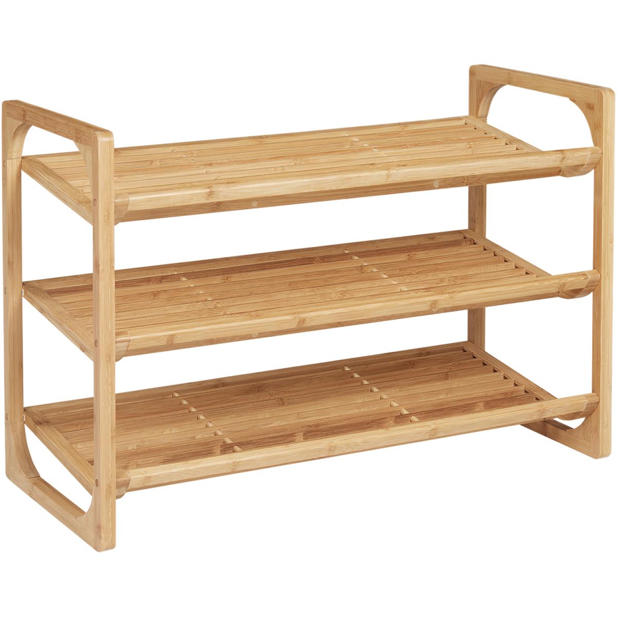 3 Tier Bamboo Shoe Storage Rack, Entryway Shoe Shelf for 9 Pair Shoes - Natural