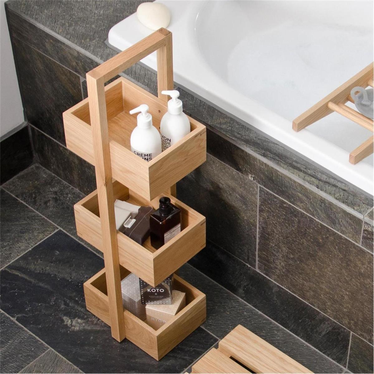 I’m a fan of this three-tier caddy for its clean, straightforward design and clever use of vertical space - it instantly tidies shower or sink areas without cluttering the floor. It suits Scandi-inspired and contemporary schemes especially well, but also complements a more relaxed, natural look when paired with woven baskets or ceramic dispensers. For styling, group similar items together - linen hand towels on the top shelf, toiletries in matching glass jars in the middle, and rolled face cloths below. Keep the colour palette limited (think muted greys, whites or pastels) to maintain a calm, cohesive feel.