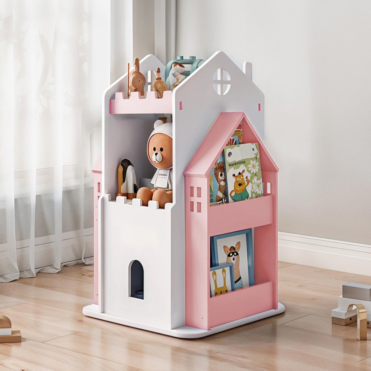 Discover this enchanting castle-shaped bookshelf for children, which decorates their room and creates a fun learning space. With its three-tier design, it easily accommodates picture books, toys, or green plants, encouraging children to organise items by category. The specially designed 360-degree rotating enlarged base ensures easy and quick access from any angle, offering stability without wobbling. Moreover, creating a reading nook with this bookshelf boosts the reading skills of children and imagination while strengthening the parent-child bond. It serves as both a treasure trove of knowledge and a display for toys or storage for accessories, creating a space where learning and play come together harmoniously.
