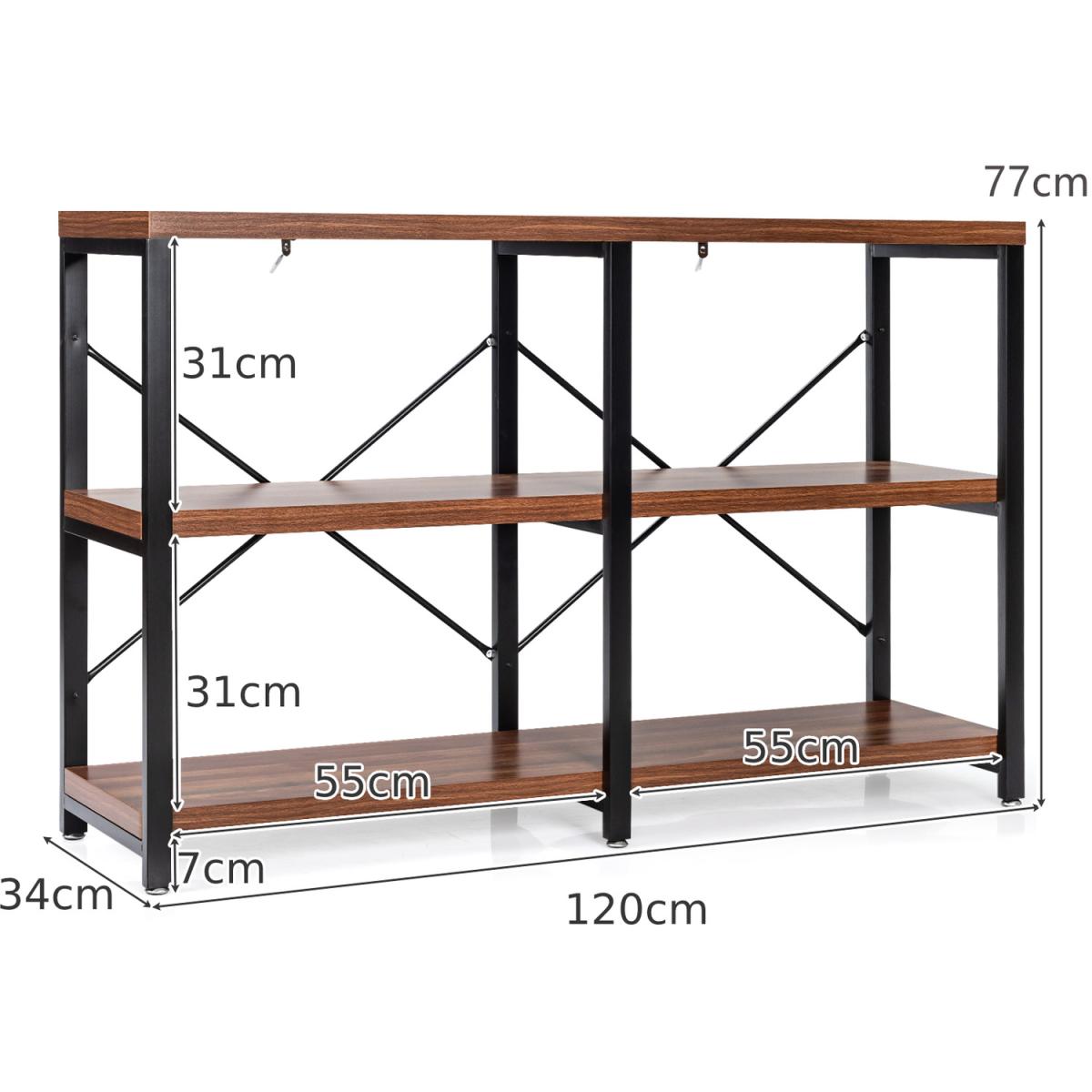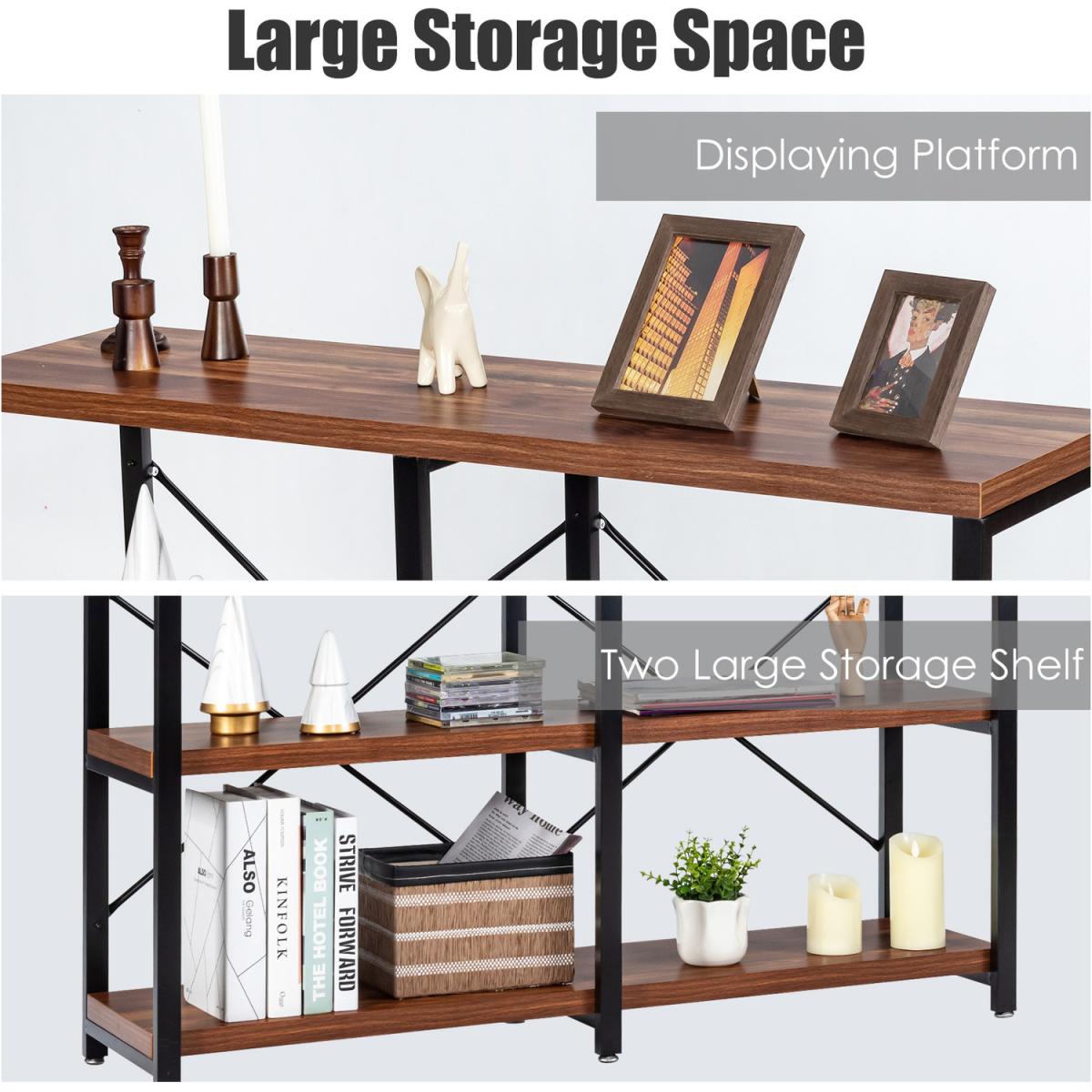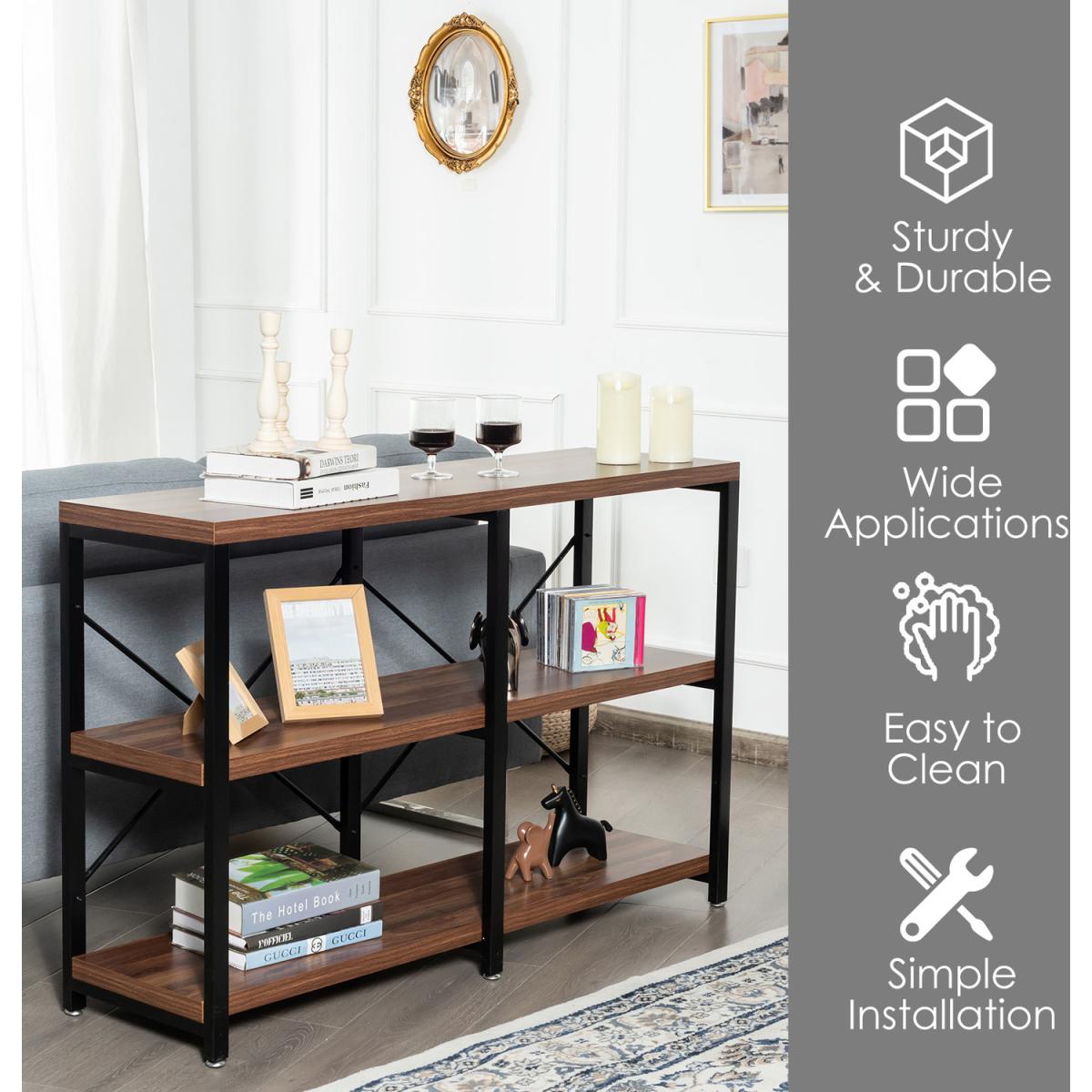 Are you looking for the furniture owning both fashion and practicality? Our 3-tier console sofa table is the best choice for you! This elegant console table can add glamour to your home while providing more storage space! This sofa table is made of durable honeycomb plates and sturdy iron pipes, which ensures a long service life. The anti-tip kit improves safety. Besides, double X-frame back braces ensure overall stability so you can store items with confidence. The open shelf provides adequate storage space for books, toys, crafts, etc. The smooth surface is easy to clean, and you can wipe it effortlessly with a damp. Moreover, this multifunctional sofa table is suitable for your kitchen, living room, entryway, study, office and so on.