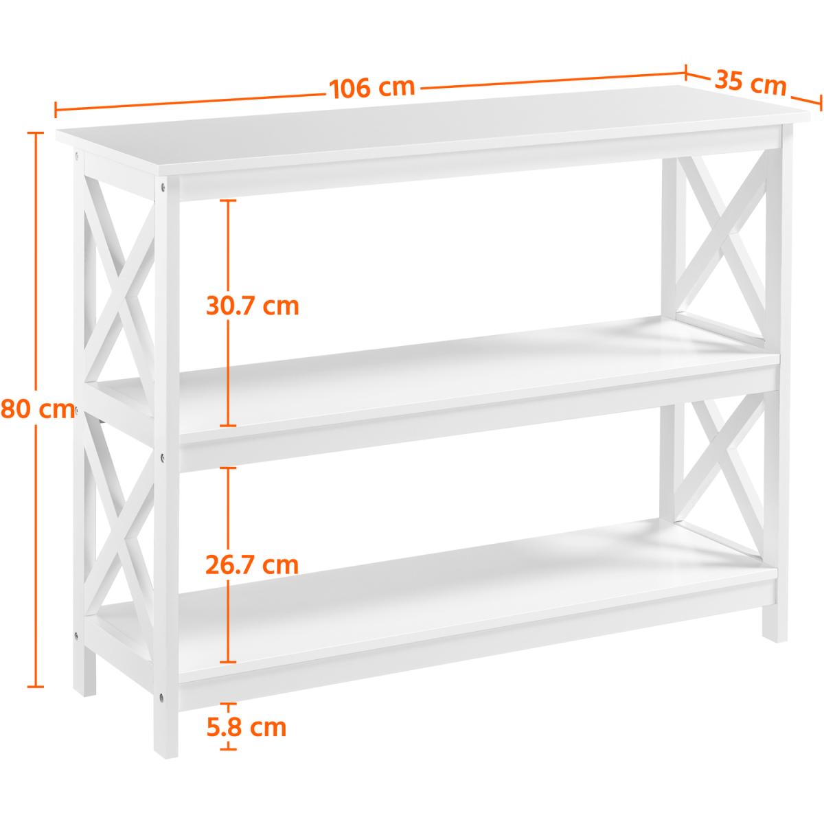 This three-tier console table is a versatile piece that fits well in both contemporary and coastal-style interiors, thanks to its crisp white finish and clean lines. I love its practical open shelving, which provides plenty of space for organisation without feeling bulky. It works especially well in entryways for organising keys, mail, or decorative accessories like plants and artwork to create an inviting first impression. When styling, consider layering with baskets or trays for added organisation, and keep the top surface clear for seasonal décor or statement pieces. Its neutral colour makes it easy to adapt across different colour schemes, from soft neutrals to bolder contrasts, making it a reliable choice for enhancing various interior types.