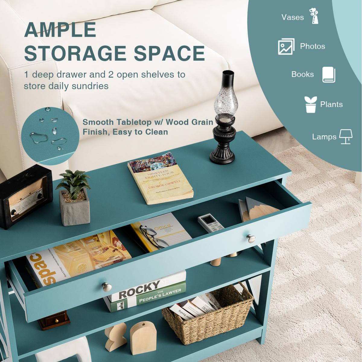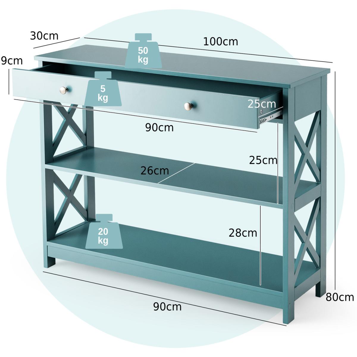 Are you still wasting time looking for keys when you go out? This 3 tier console table is the perfect solution for you!Designed with the spacious table, the large drawer and 2 storage shelves, this wooden sofa table comes with ample storage space for your belongings, such as key, sunglasses, photo frame and more. Made of solid MDF with odorless painting finish, this premium entryway table is durable and stable to hold up to 95kg. Measuring with 100 x 30 x 80cm (L x W x H) in dimension, this 3 tier console table will make a timeless addition to your living room, hallway and entryway, keeping your home clean and tidy.