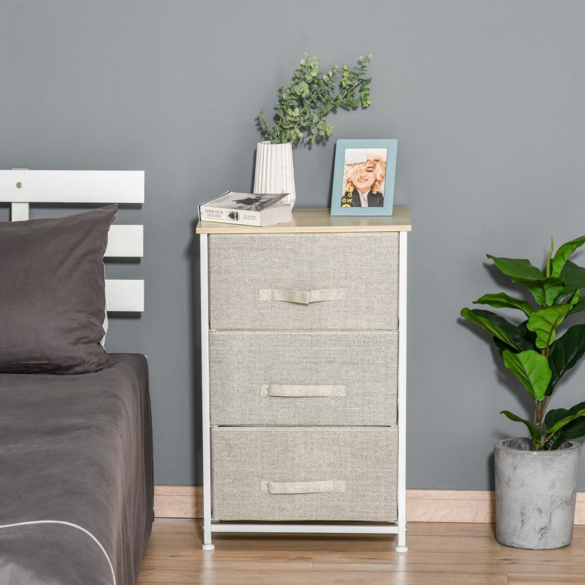 The simplicity of this three-drawer unit from HOMCOM means it will welcome itself into your home with ease. The light grey and white colourway, in a classic sharp shape, works great all over the home - from the bedroom to the hallway, living room and beyond. With a powder-coated steel frame for strength, it is fitted with three thick linen drawers for storage. It's finished with handles on the drawers to open them easily.