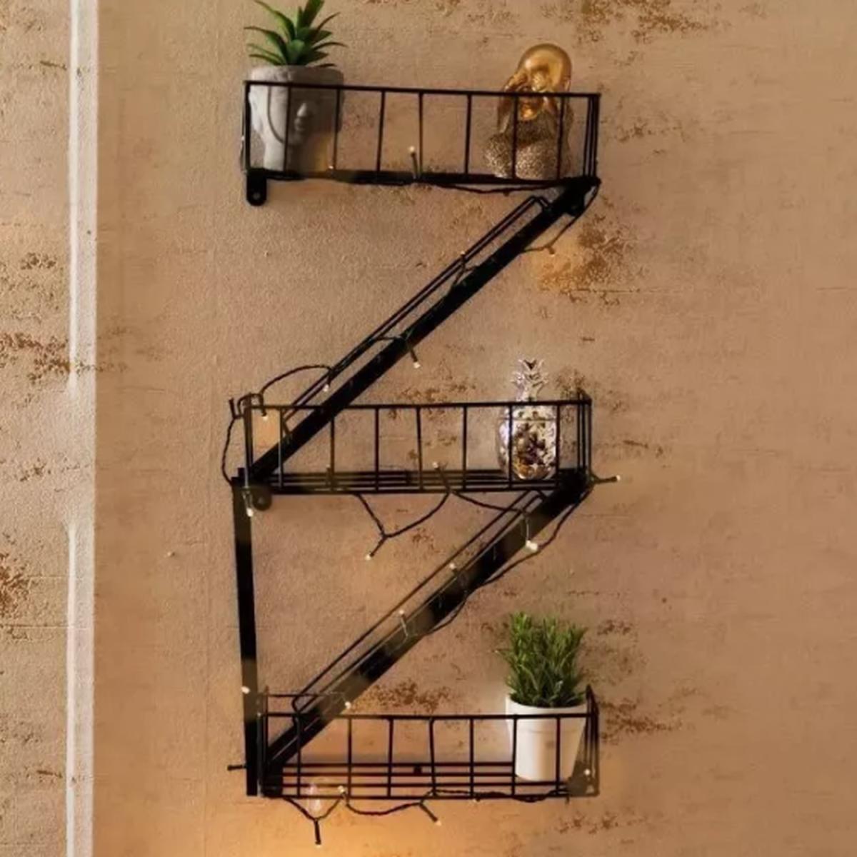 3 Tier Fire Escape Floating Wall Shelf - Black