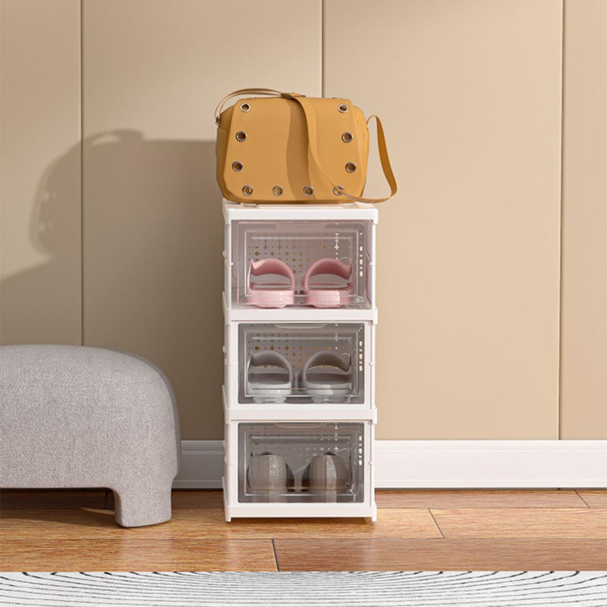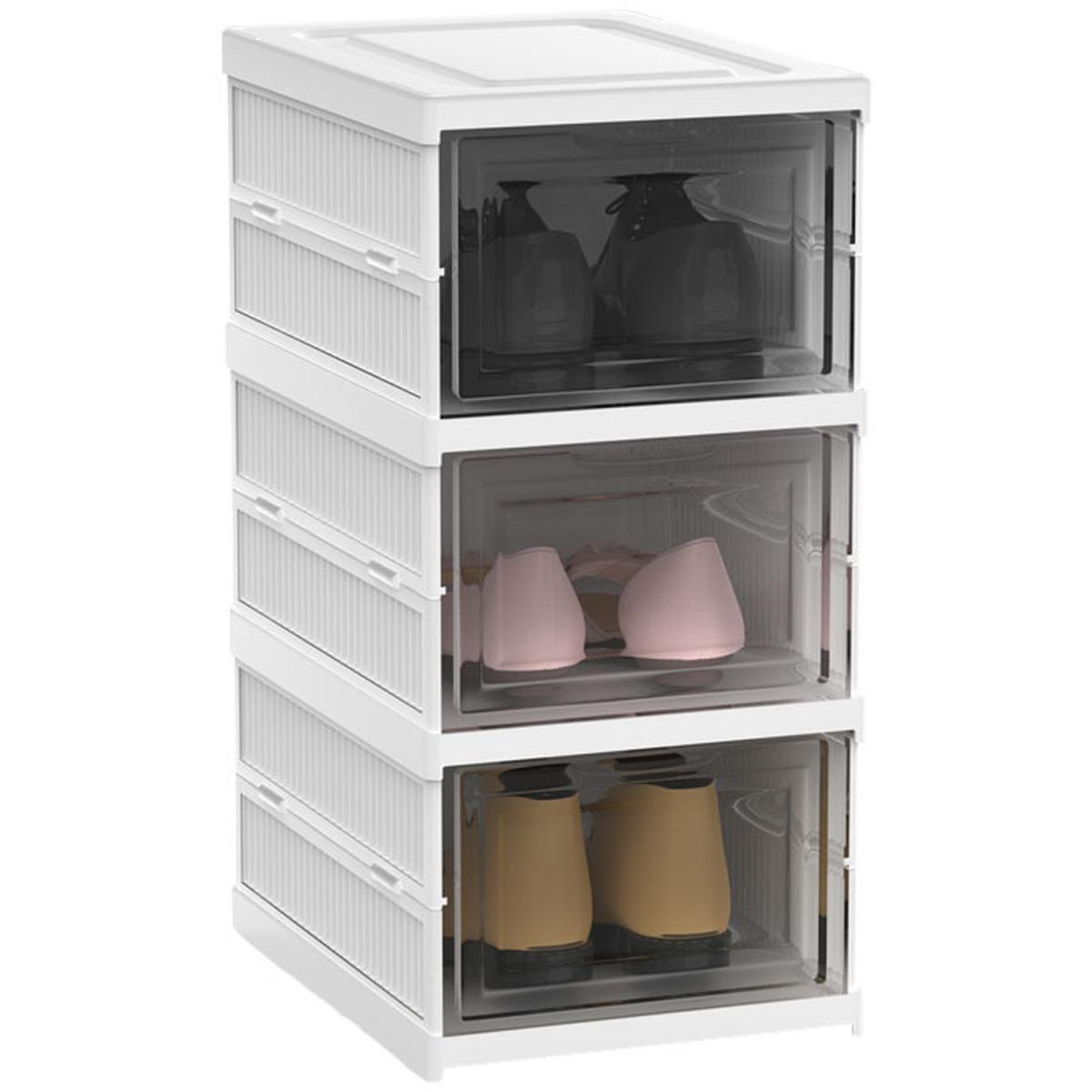 3 Tier Foldable Shoe Storage Box Unit - White / 1.35kg
