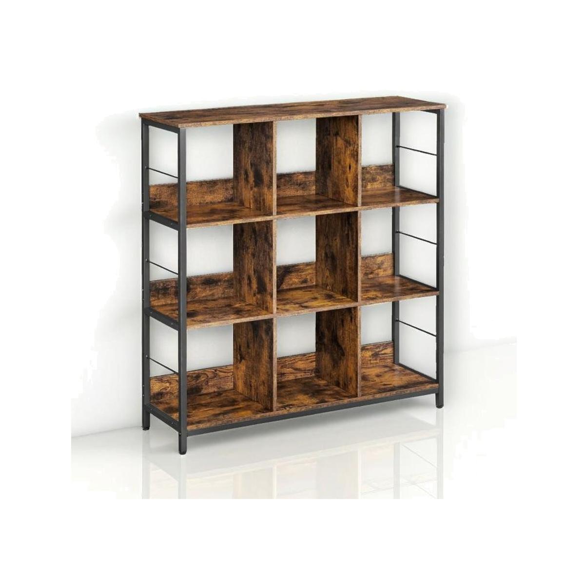 With its stylish blend of rustic brown and black tones, this bookshelf brings industrial charm to any room, elevating its aesthetic from ordinary to captivating. Designed with 9 compartments, this bookcase offers ample versatility to suit various storage needs. Whether in the living room for plants and decor, the study for books, or the kitchen for jars and bottles, it adapts seamlessly to different spaces. Built for stability and peace of mind, each tier features particleboard back panels and sturdy steel side bars. Adjustable feet ensure the unit remains steady on uneven surfaces, while steel bars add extra security to prevent items from slipping off.