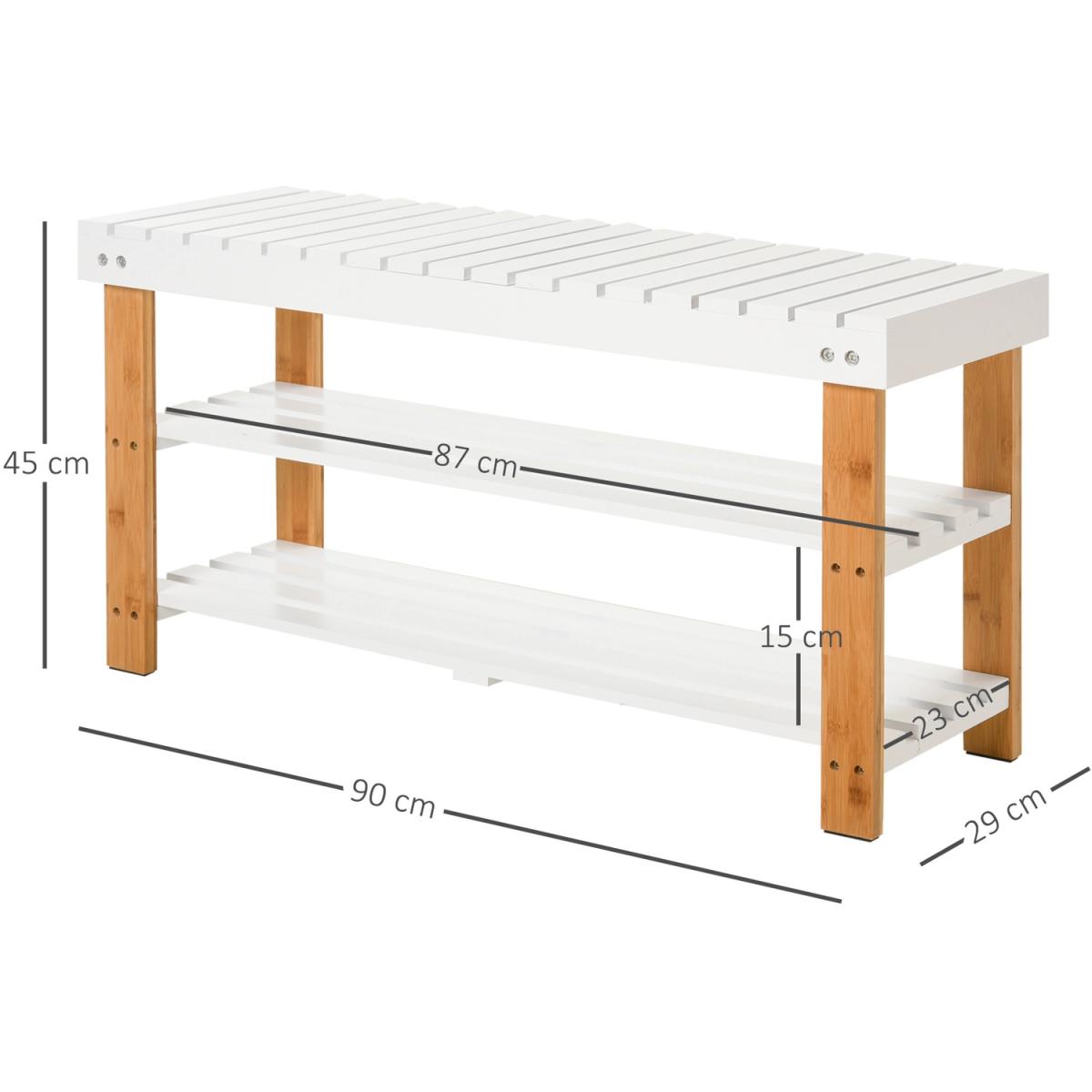 It's time to organise your shoes and boots with this cabinet from HOMCOM. The simple and modern look will fit any decor of your room. Crafted from solid wood and MDF board, this unit is durable for everyday use, with its open design over three shelves ensuring easy storage, whilst allowing your shoes to aerate for hygiene. A small concealed compartment on the top shelf allows storage of shoe accessories, keys etc. Finished with foot caps for balance and floor protection.