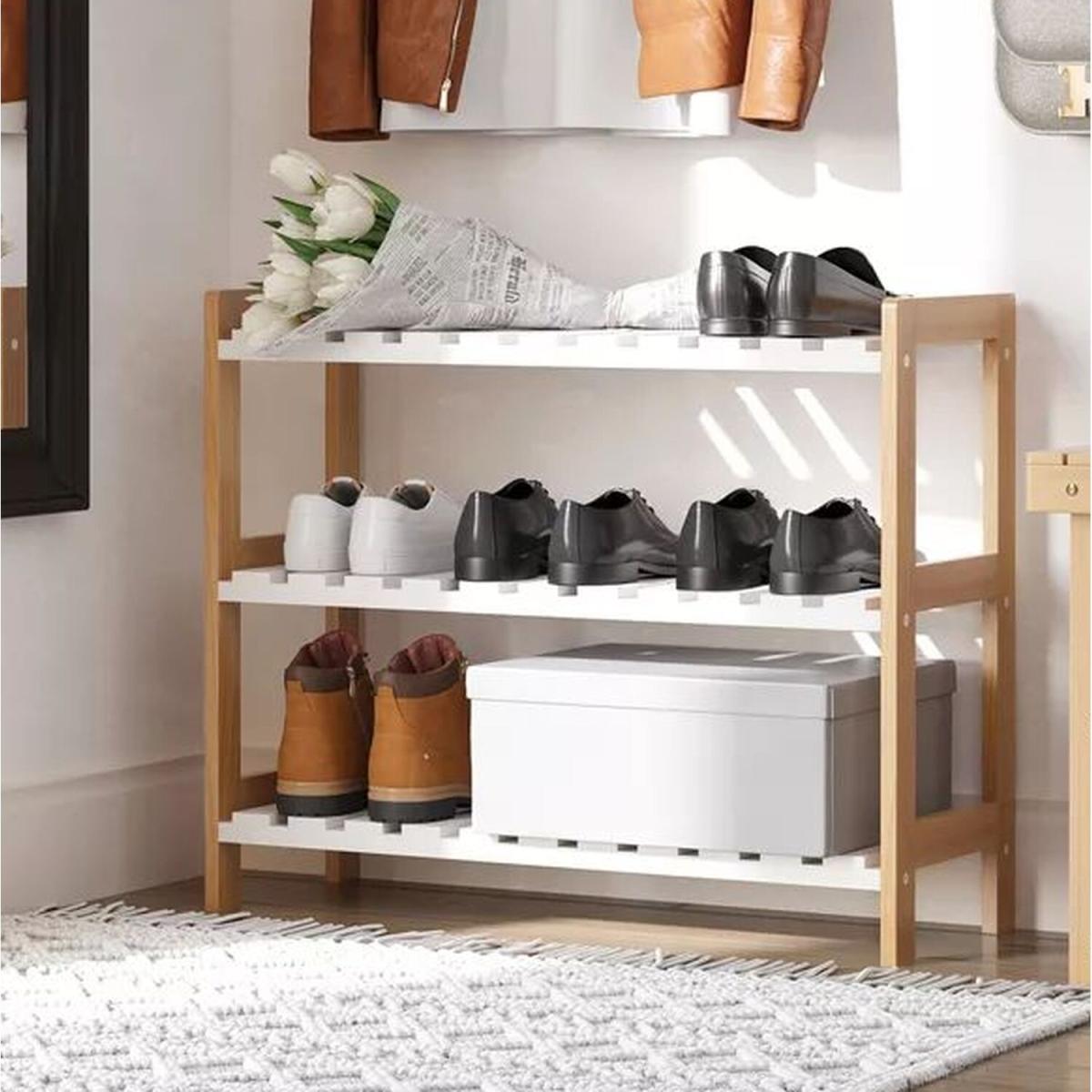 I’m a big fan of this three-tier rack for its clean lines and light frame - it slips neatly into a hallway or under a bench without feeling bulky. The white slatted shelves and natural wood sides work especially well in Scandi, modern farmhouse or minimalist schemes, where you want storage that looks tidy rather than hidden away. For styling, keep pairs grouped by type or colour to make finding shoes easier, and use the top tier to display a small plant pot or decorative box for keys and sunglasses. In a narrow entry you could even swap the box for a tray to catch post or loose change, turning the rack into a smart bit of everyday organisation.