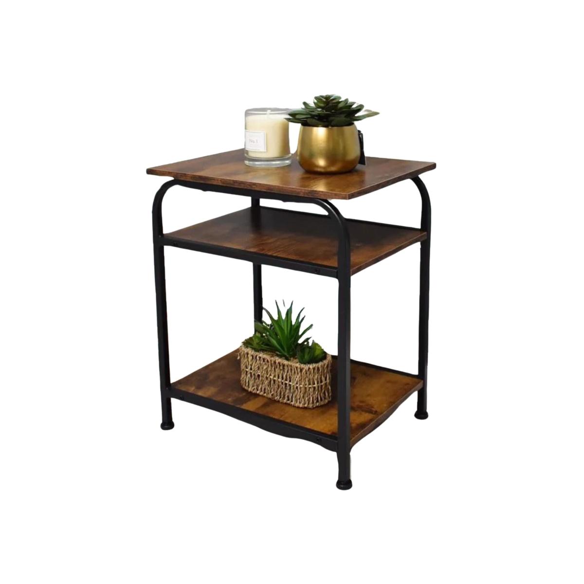 3 Tier Side Table Rustic Industrial Living Room Furniture - Brown