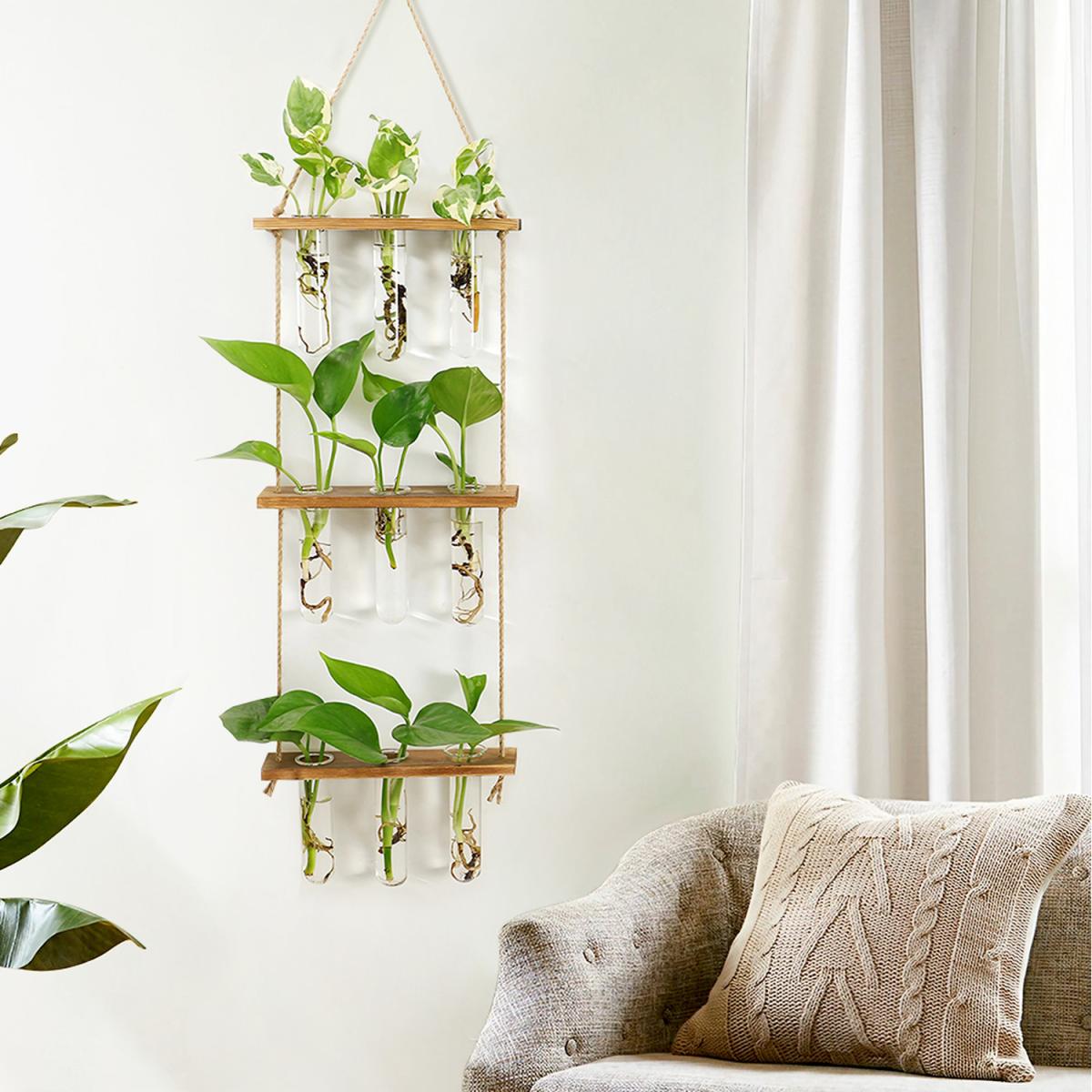 Bring nature indoors with this 3-Tier Wall-Mounted Glass Vases, perfect for showcasing greenery and fostering an organic lifestyle. Featuring 9 durable glass tubes, it's ideal for propagating plant cuttings while beautifully decorating your walls. The space-saving design blends functionality with charm, making it a stylish and lasting addition to your living space.