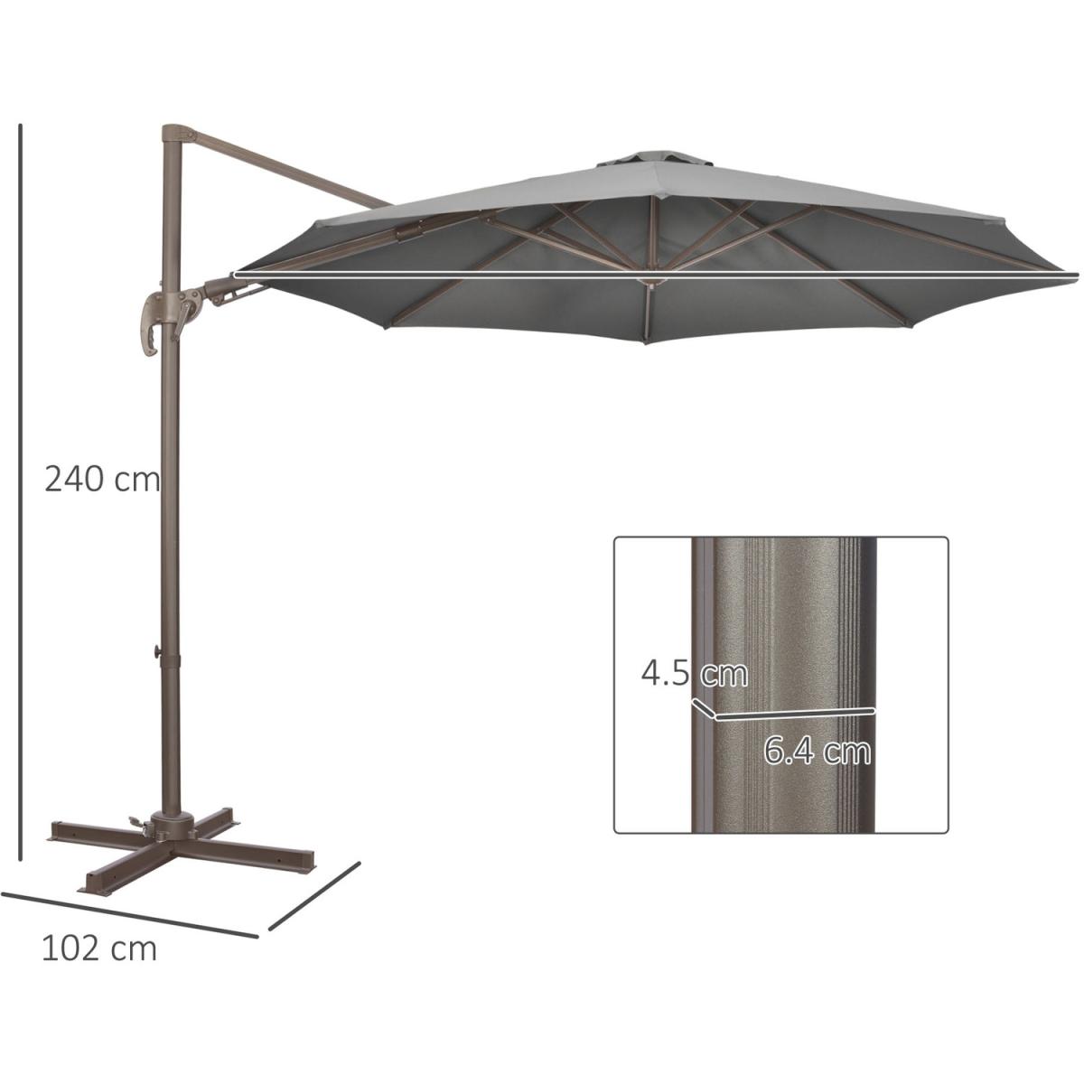 A simple, stylish garden umbrella, from Outsunny, which creates shade your way. The 3m x 2.4m offers a large shelter, with a four-position adjustable angle and 360 movement to set to practically anywhere you want great for using throughout the day, when the sun moves around. The crank handle makes it easy to open and close. An aluminium pole for a strong core, with ribs connecting the canopy to the frame for extra support. Comes with a cross base - weights are required.