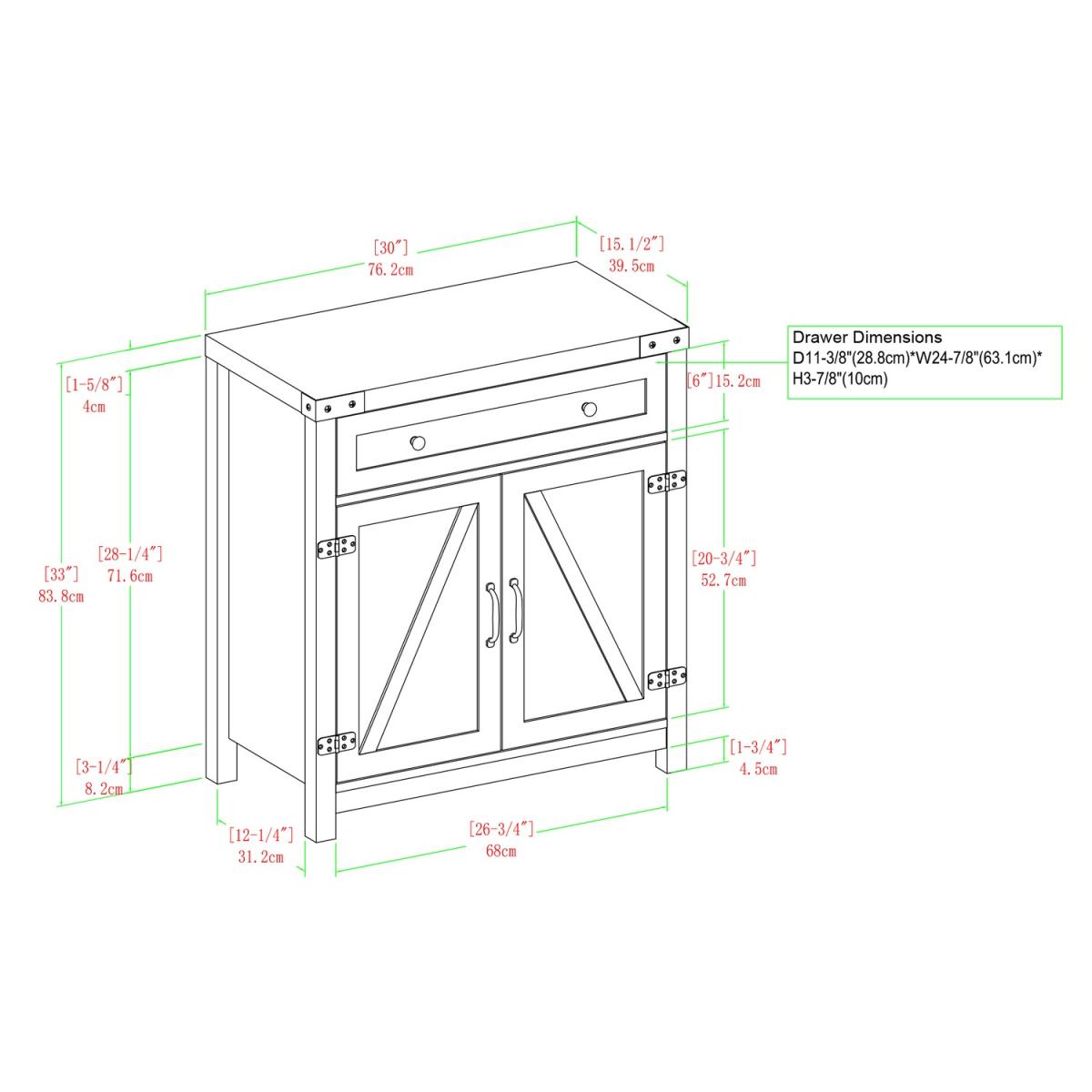30 Farmhouse Barn Door Accent Cabinet - White Oak