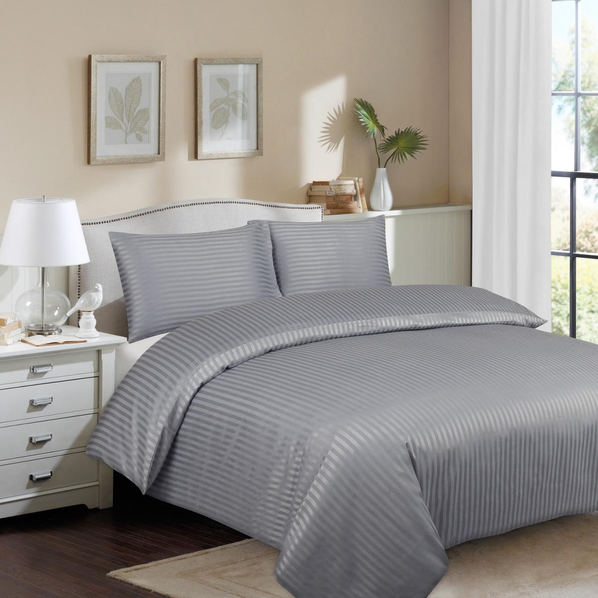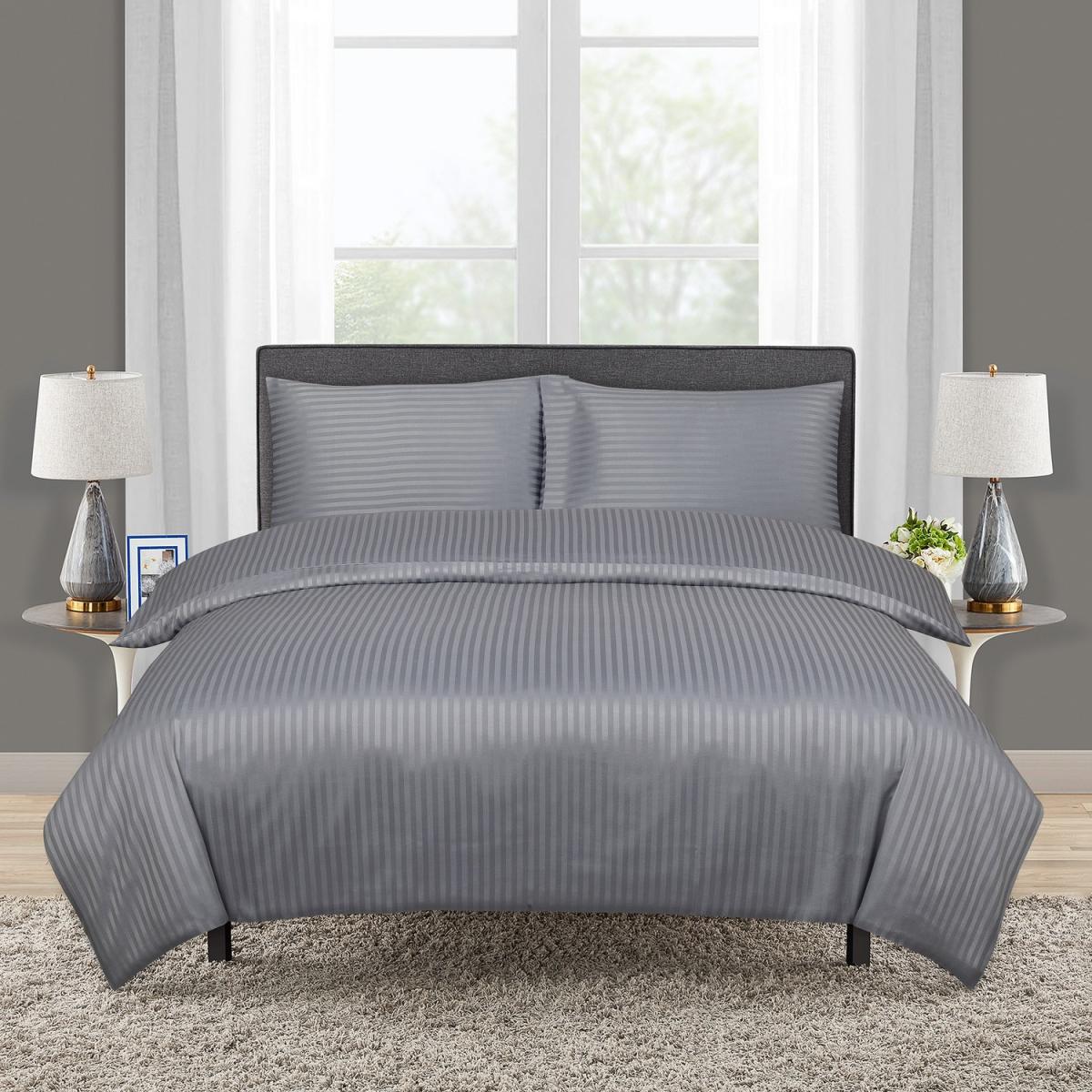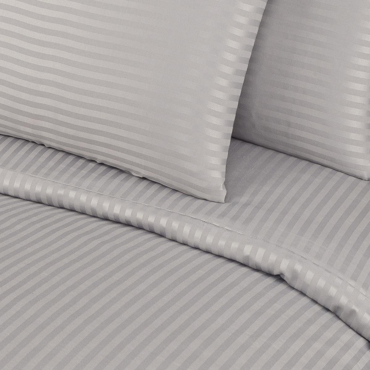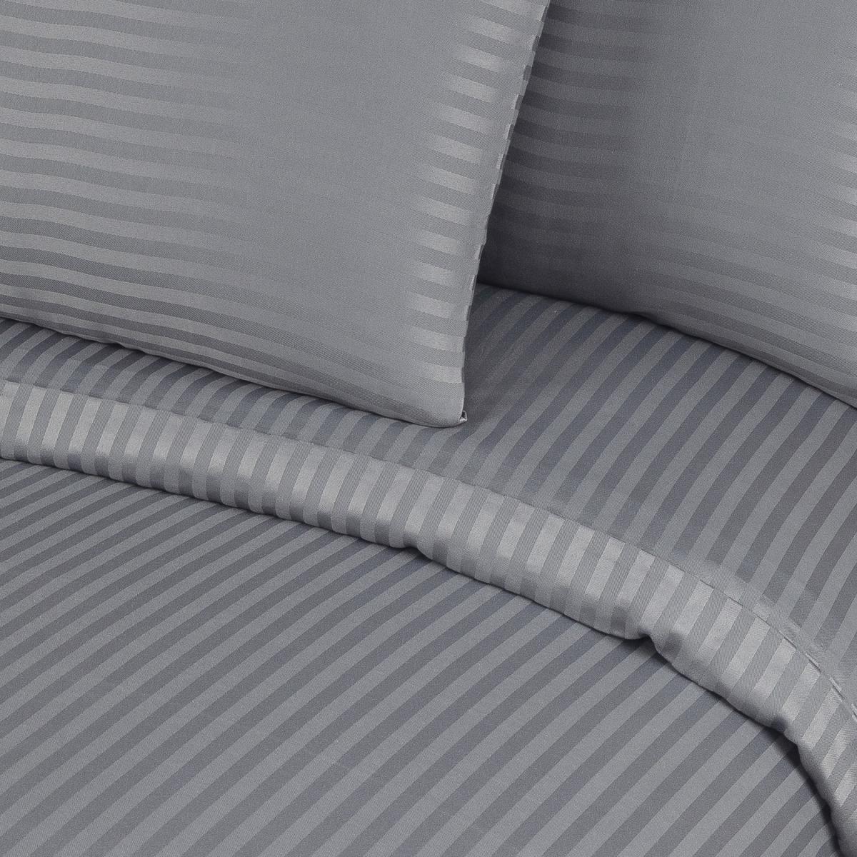 300 Thread Count Hotel Quality Sating Stripe Duvet Cover Set - Grey / Double