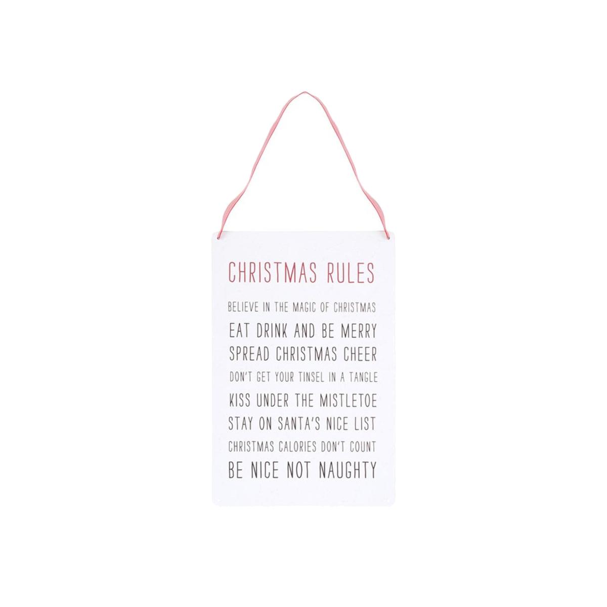 30Cm Christmas Rules Metal Hanging Sign - White
