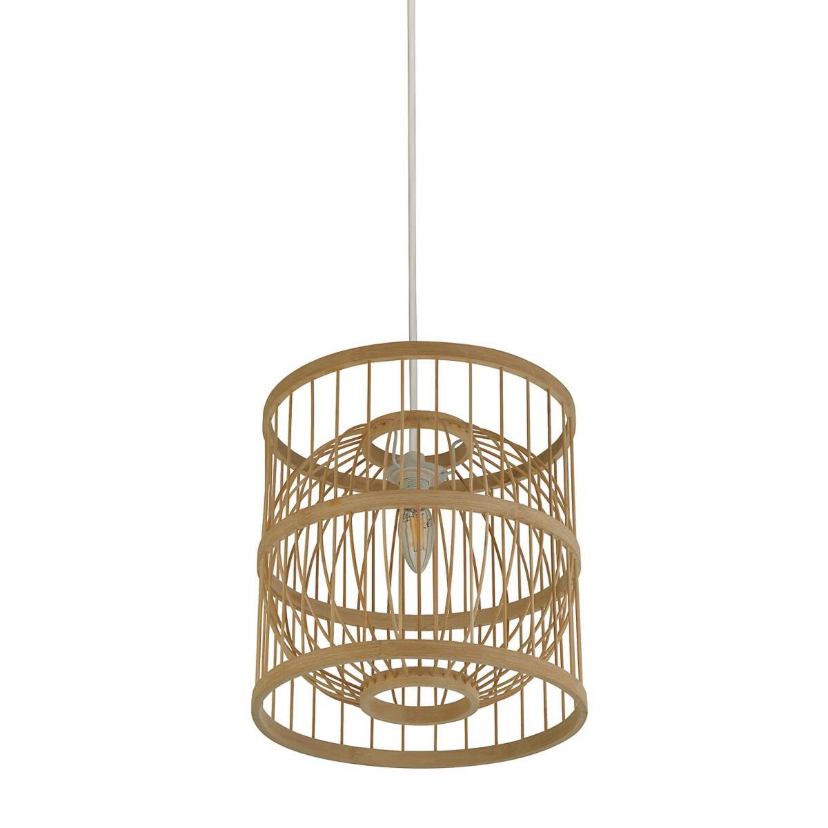 This quirky and fun bamboo shade is great for living spaces and bedrooms alike. Fashioned in a cylinder shape with inner sphere frame, the open design means you get plenty of light when illuminated and it's guaranteed to get guests talking. Product Dimensions: 30x30x30cm Bulb Type:E14,E27or B22 Maximum Wattage:7W Bulb Included?:No. Number of Bulbs Required:1Cable/ Switch Info:N/AThis product will be dispatched by one of our trusted suppliers. You’ll be contacted by their selected courier about your delivery.