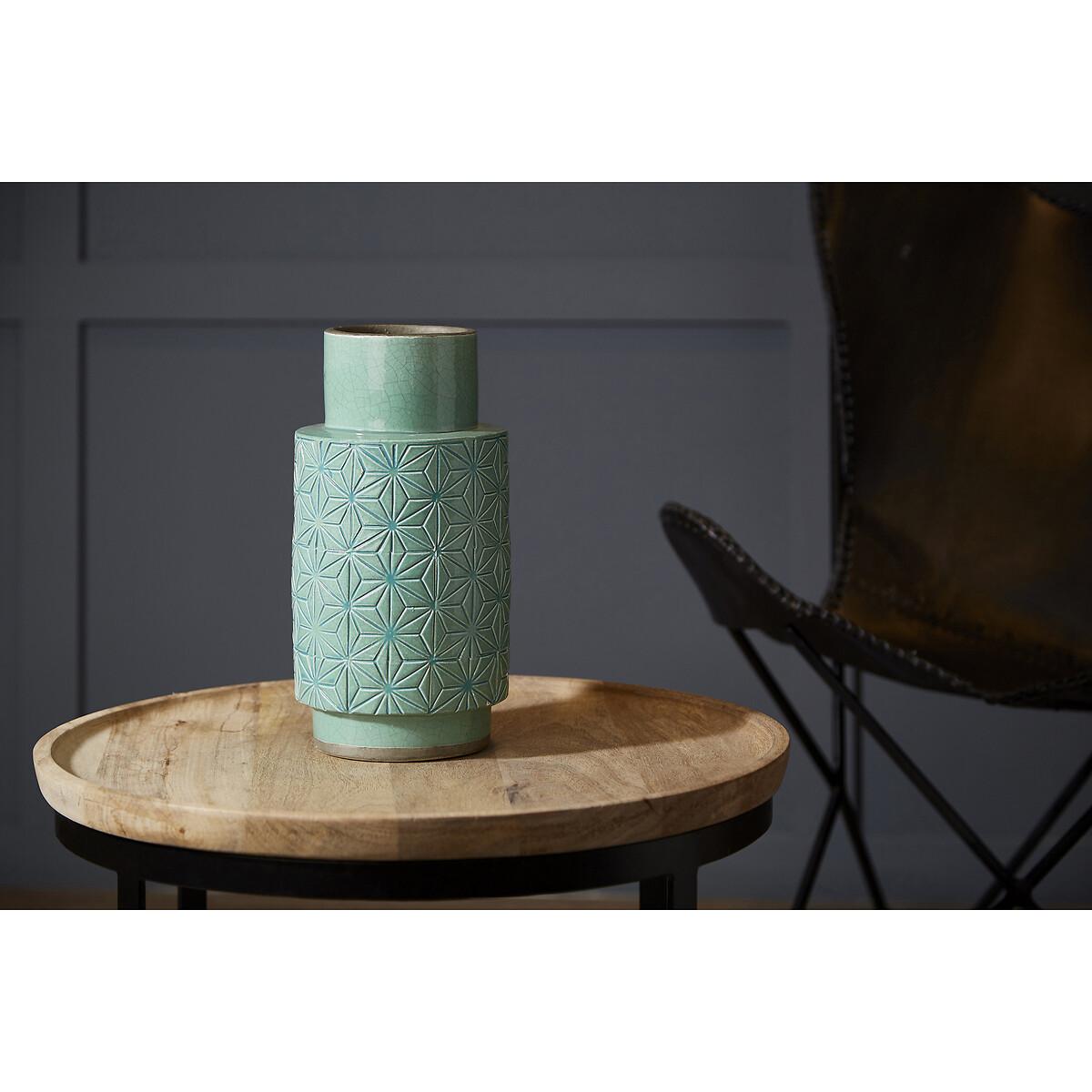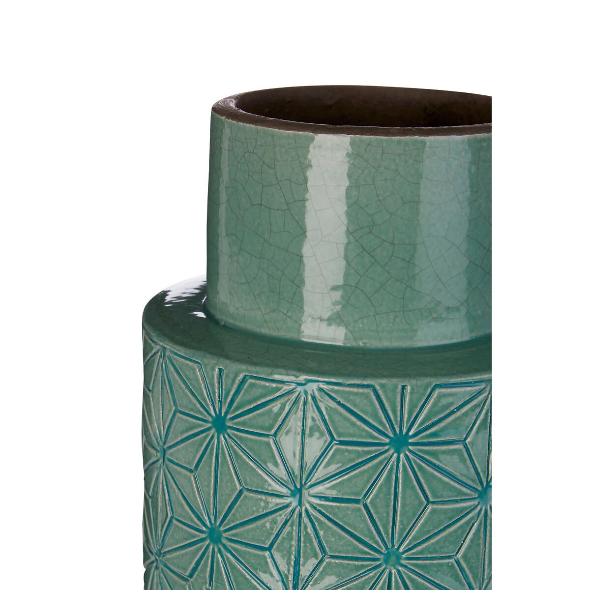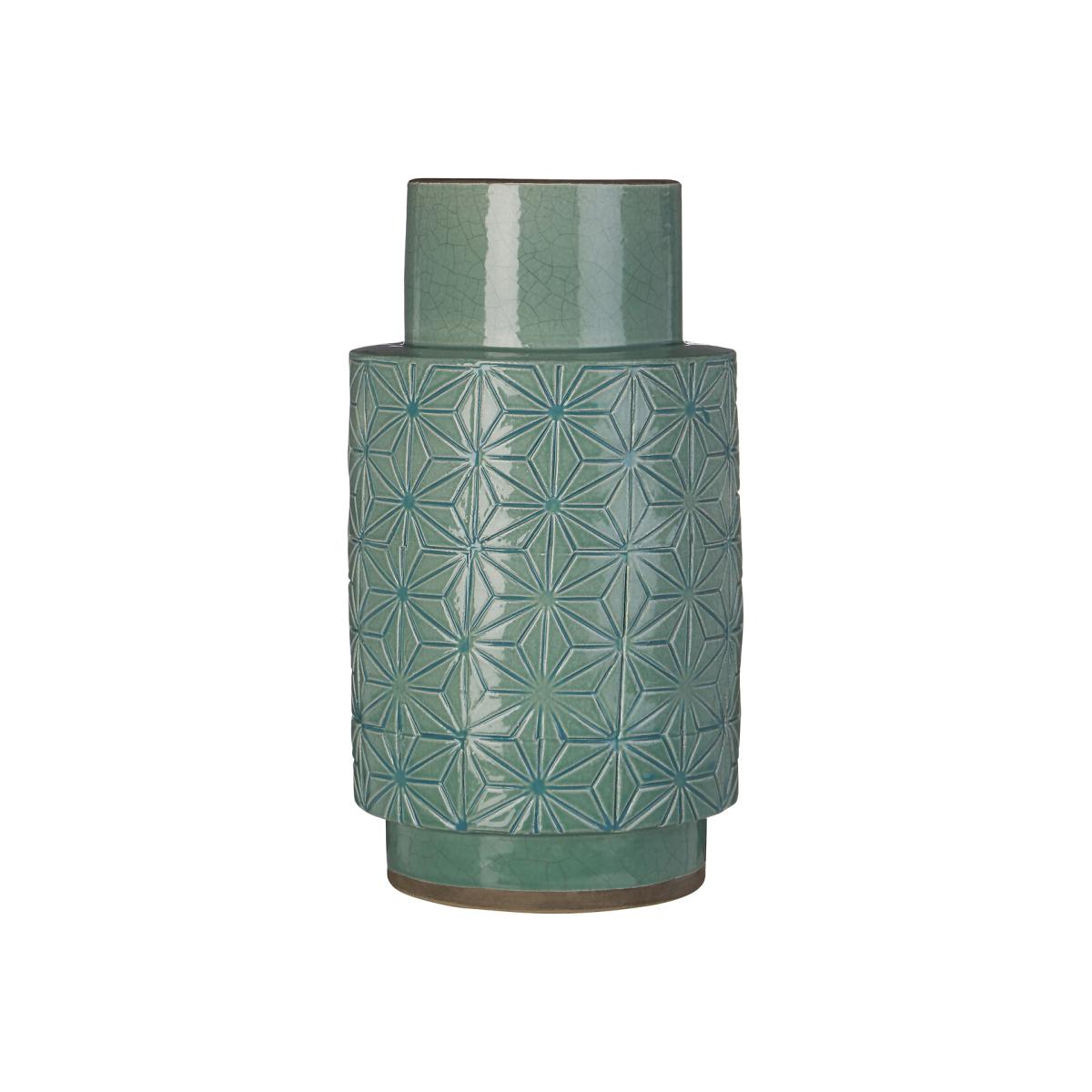 30cm Green Geo Earthenware Vase