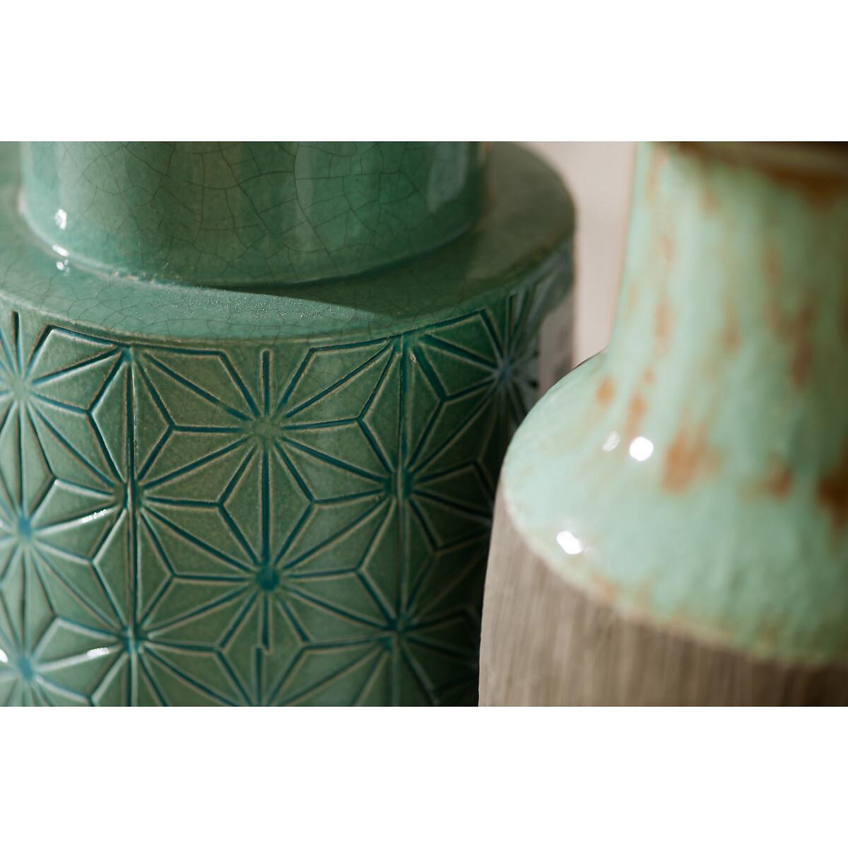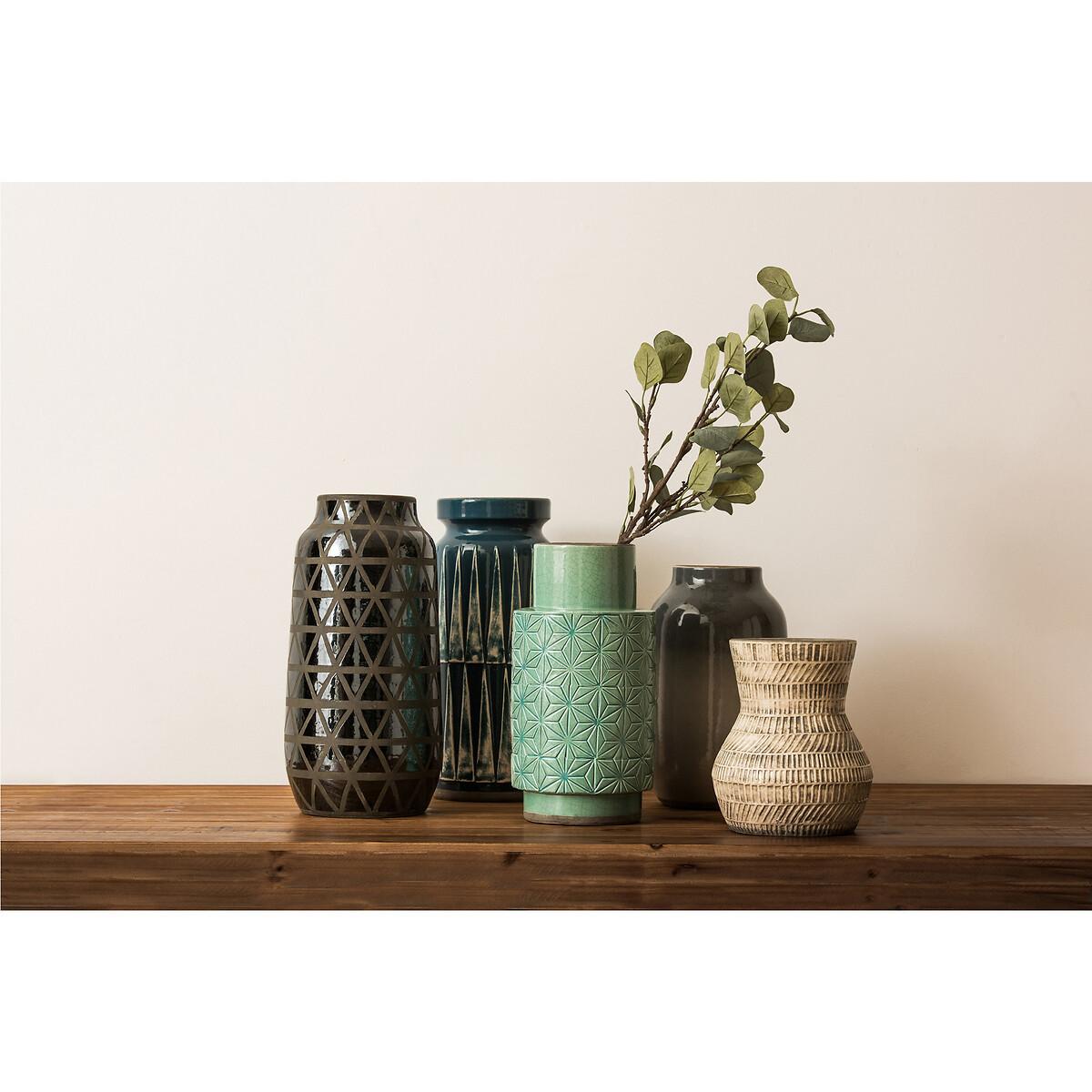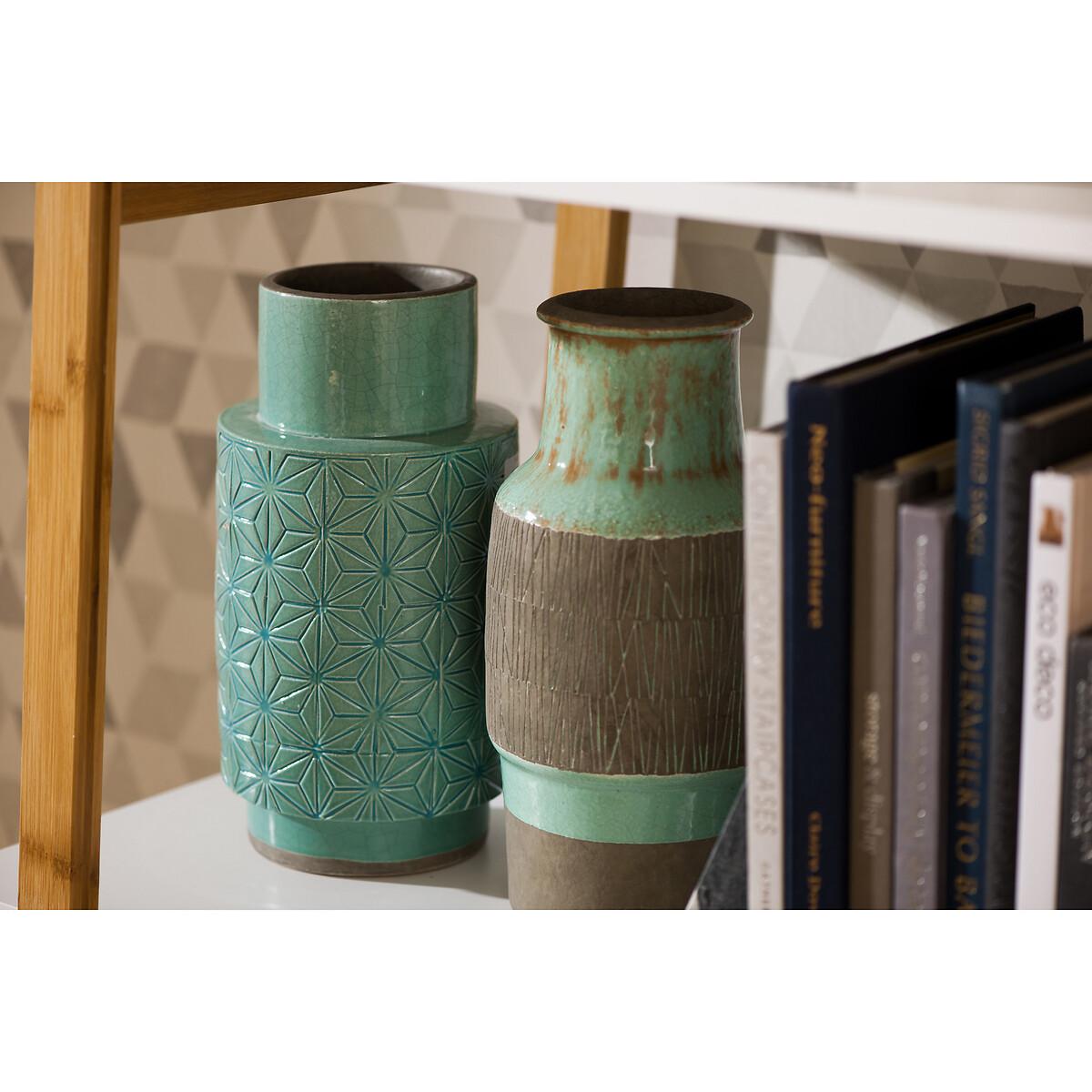 30cm Green Geo Earthenware Vase