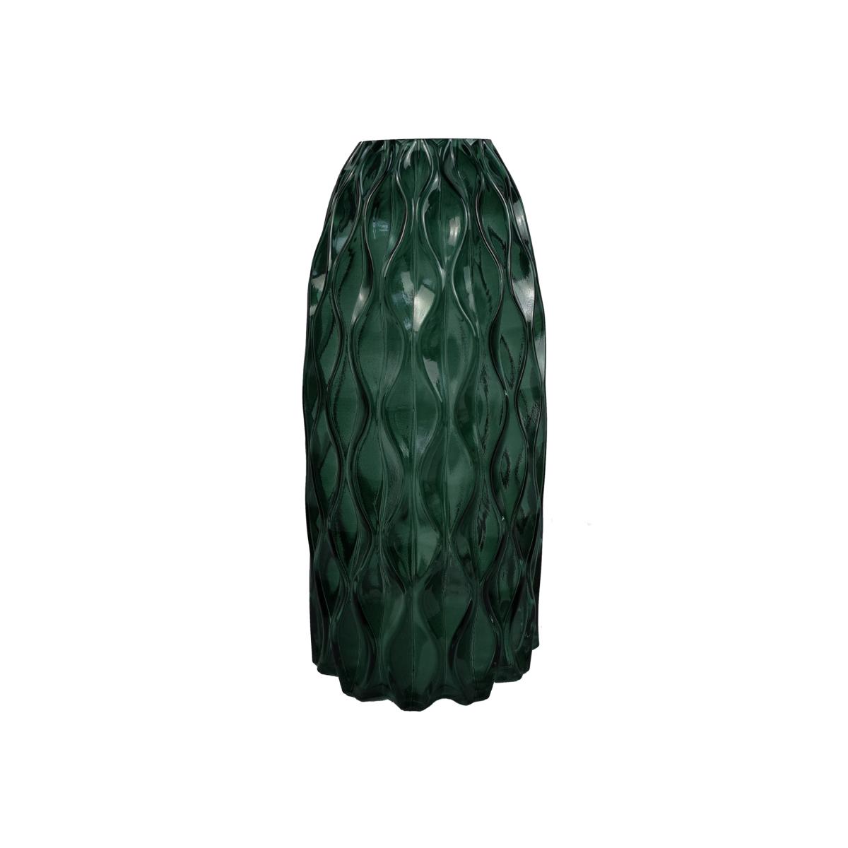 I love this green wave vase for its bold colour and textured design, which instantly adds interest to any space. It works well in a variety of interiors, from modern minimalism to more eclectic schemes. For styling, I suggest keeping it simple with a few fresh or dried stems to emphasise its shape, or pairing it with other textured accessories to create a layered look. It's best placed on a side table, mantelpiece, or as a standalone statement piece on a console - perfect for adding a touch of colour and sophistication.