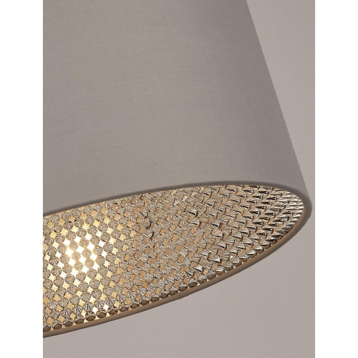 I really like this grey fabric lampshade because of its versatile colour and understated style, making it easy to incorporate into both contemporary and traditional interiors. The silver studded inner adds a touch of subtle glamour and texture, perfect for giving a simple fixture a bit of personality. It's particularly well-suited to neutral or muted colour schemes, working beautifully in living rooms, bedrooms, or even layered within a reading nook. For a polished look, try pairing it with metal accents like brushed nickel or matte black hardware. Practical styling tip: hang it at a height that allows the light to soften the space without creating shadows, and consider using warm LED bulbs for a cosy glow.