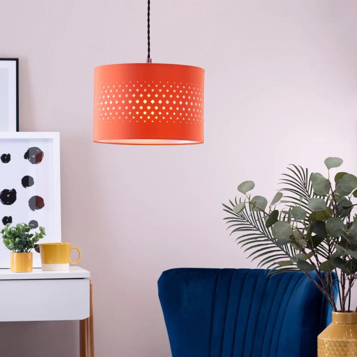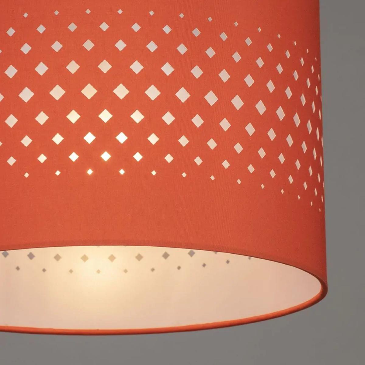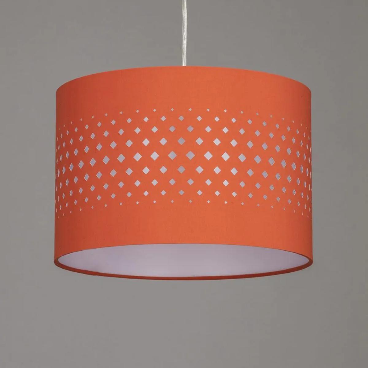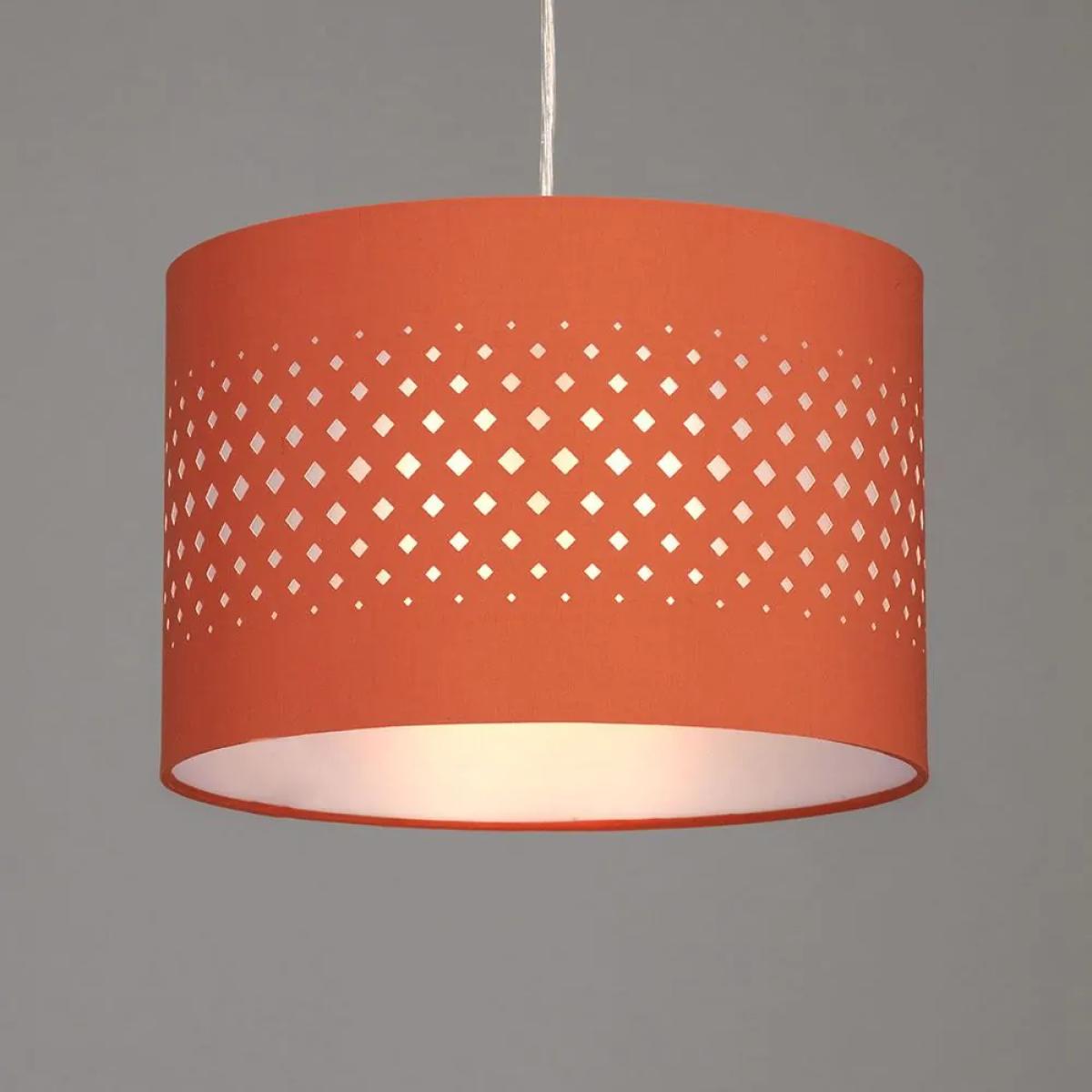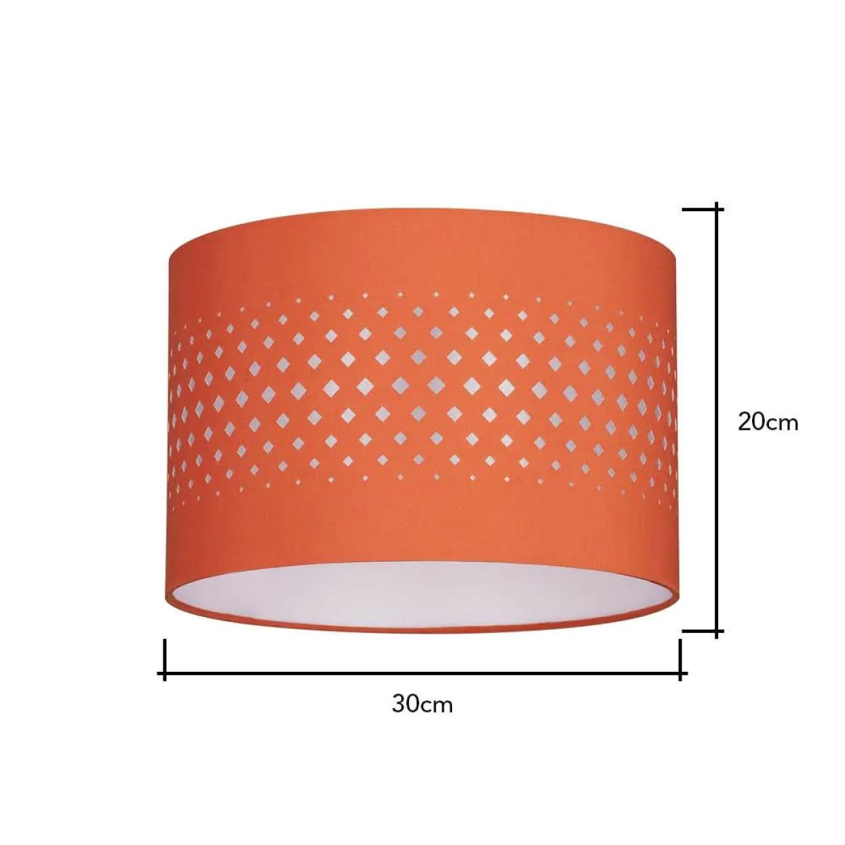 Our new 30cm Laser Cut Shade adds a warm pop of colour to your home with a beautiful, Burnt Orange finish that stands out among any home décor as a great accent lighting feature. The simplistic, cylindrical design shade is adorned with an arrangement of laser cut diamonds, each allowing the light within to project out into your room, providing a warm glow and complimenting the orange tone perfectly.