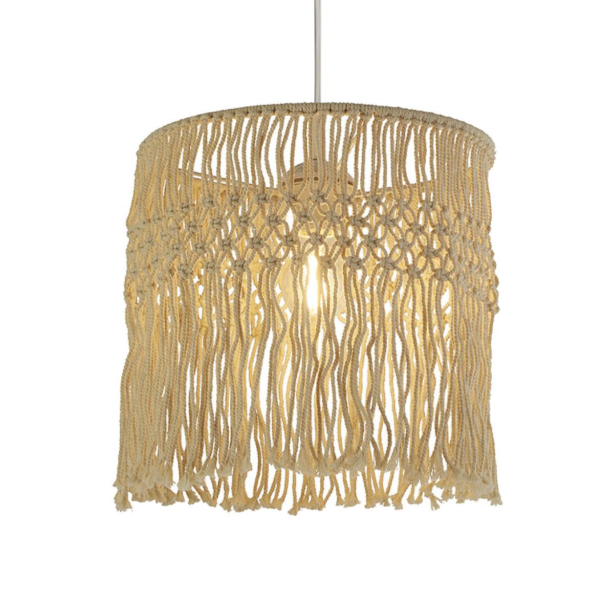 An on trend twist on a traditional easy fit shade, an intricate cascading macrame design creating a stunning light effect when lit. Product Dimensions: 30cmx30cmx32cm Bulb Type: E14,E27 or B22 Max Watt:10W This product will be dispatched by one of our trusted suppliers. You’ll be contacted by their selected courier about your delivery.