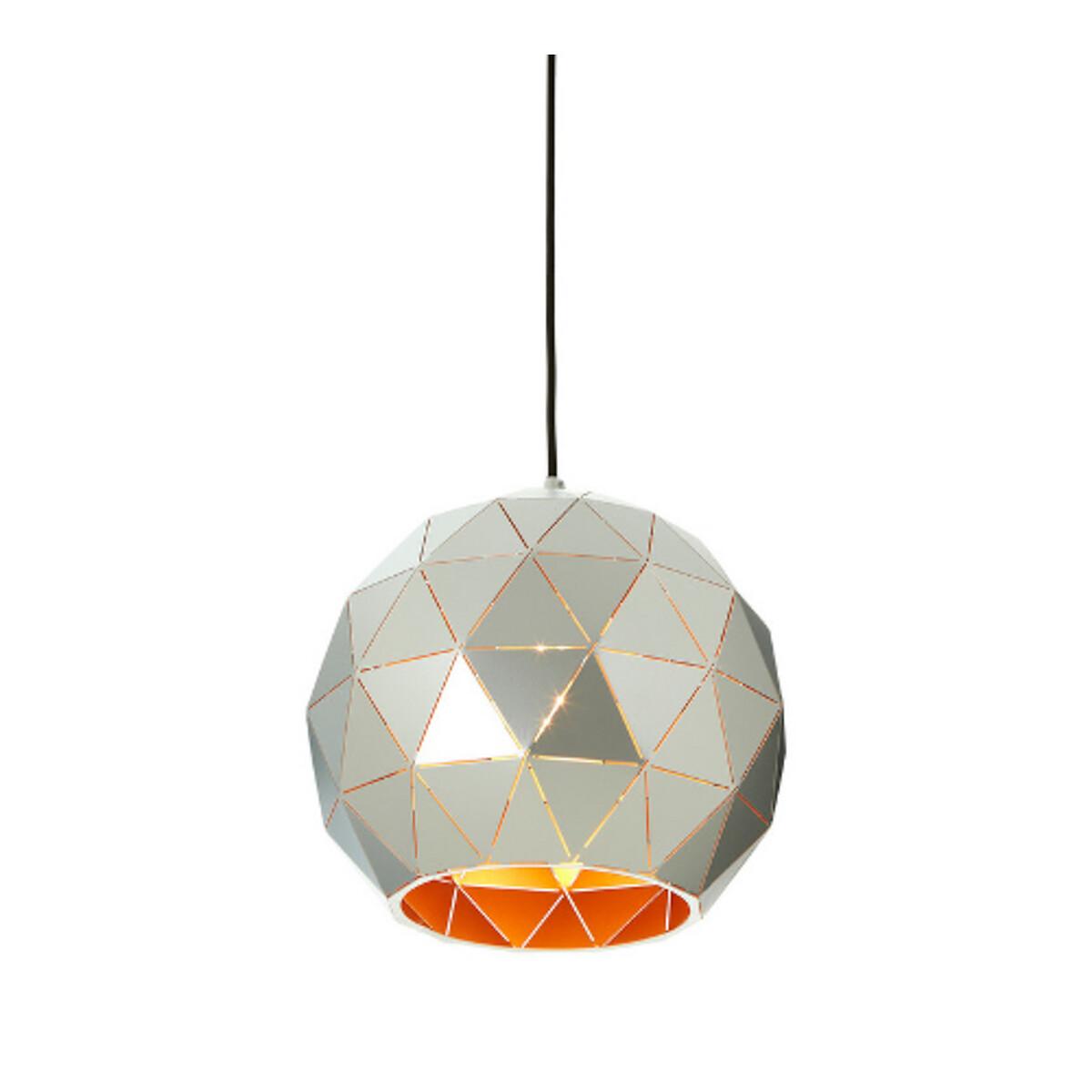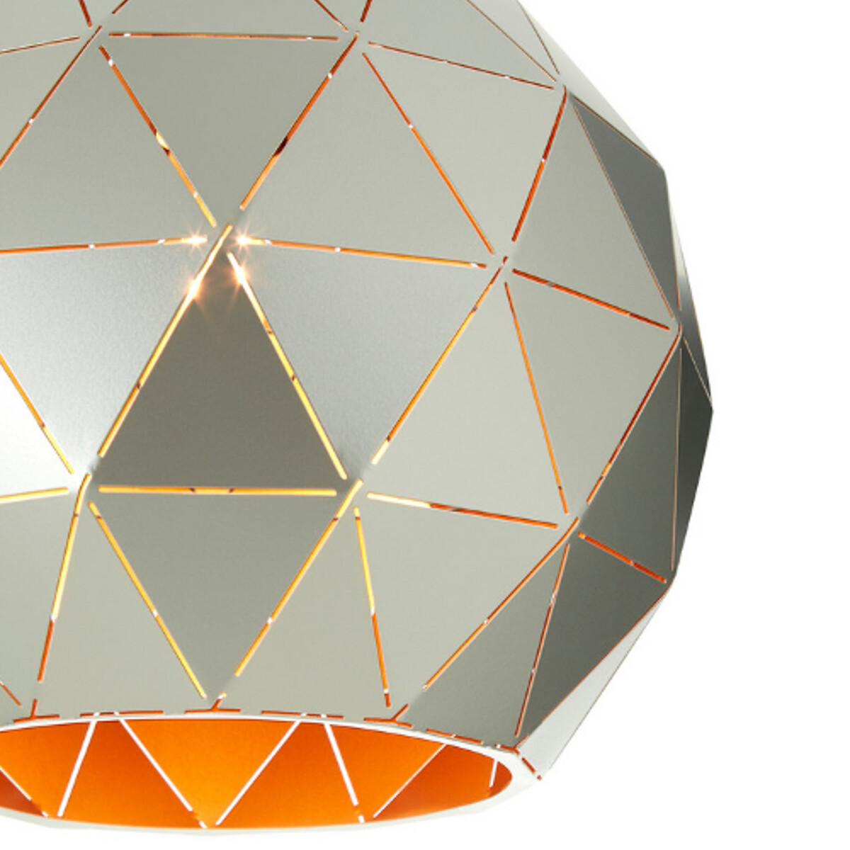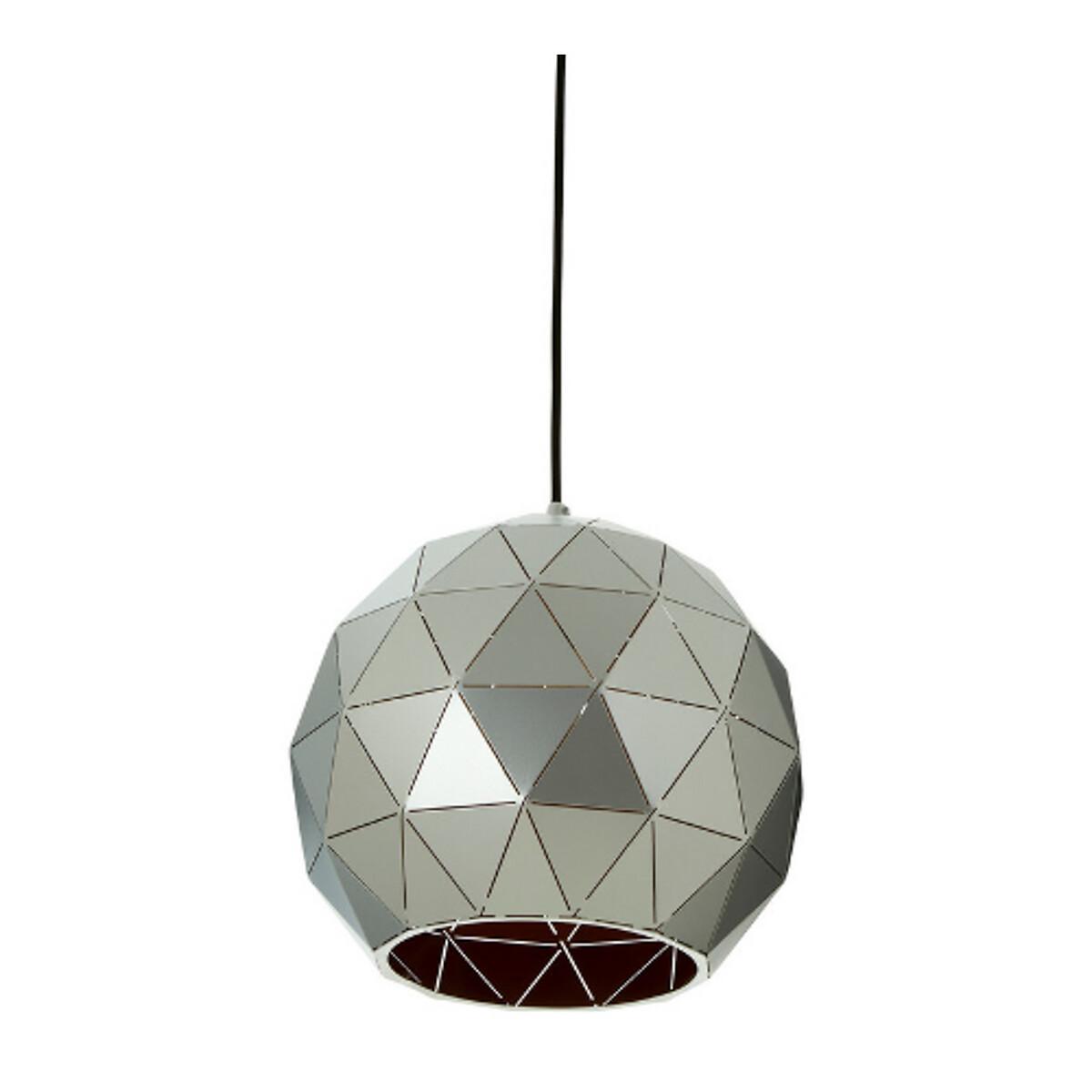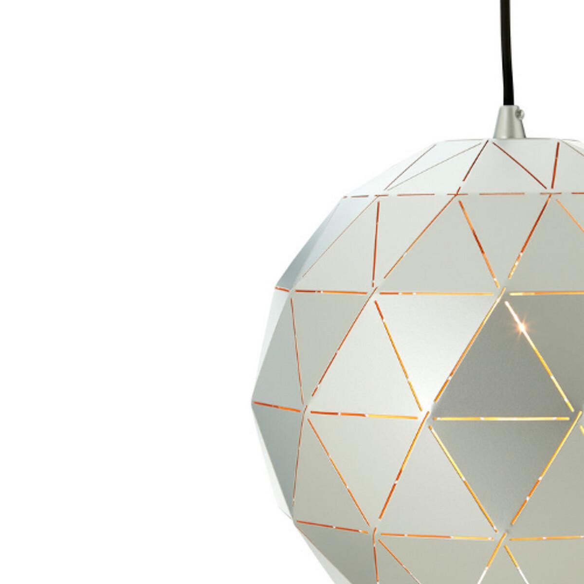 This product will be dispatched by one of our trusted suppliers. You’ll be contacted by their selected courier about your delivery. The shade is composed of a series of triangular forms made from tough steel. Slivers of space separate each segment, and when lit this allows small shards of light to escape. The silver finish makes it easy to coordinate with metallic design themes. A simple black cord suspends the light from the ceiling. Bulb not included. Bulb required: E27 60WDimensions:. H 146 x W 30cm