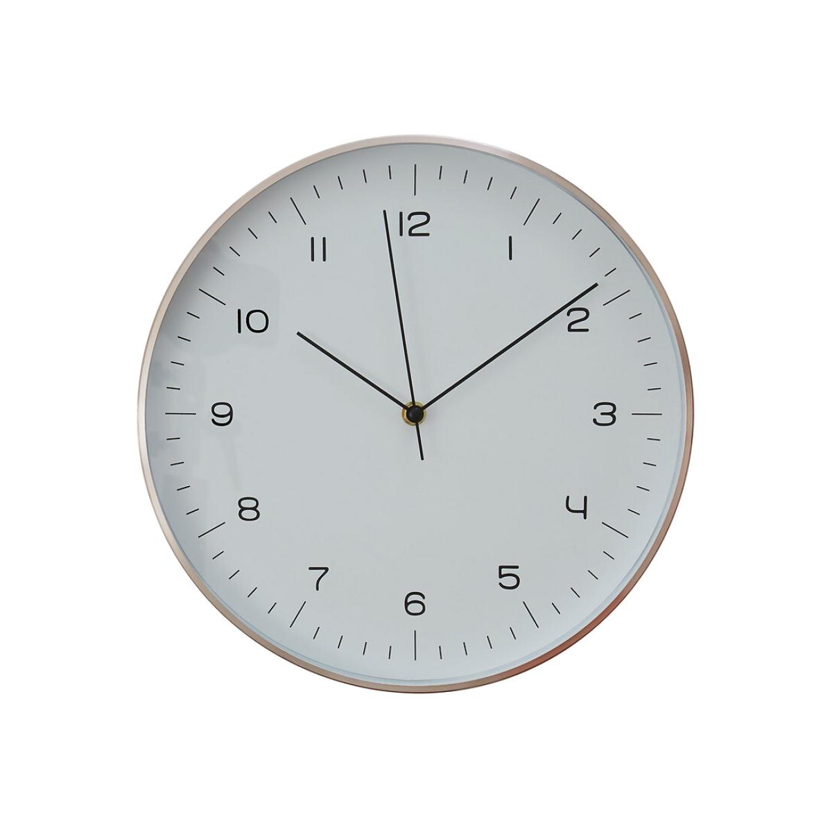 I love this clock for its clean, contemporary look, which makes it a versatile addition to various interiors. Its white face combined with copper detailing creates a subtle yet sophisticated contrast, perfect for modern and minimalist schemes. It works particularly well in kitchens, home offices, or living rooms where a functional piece can also serve as a stylish statement. Practical styling tips include pairing it with warm metallic accessories or placing it against a textured or coloured wall to make it stand out. Keep accessories simple around it to maintain a sleek, uncluttered vibe, allowing the clock’s design to be the focal point.