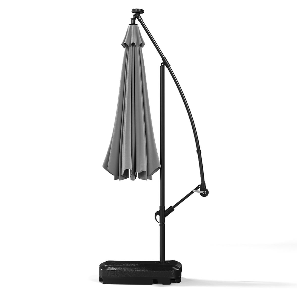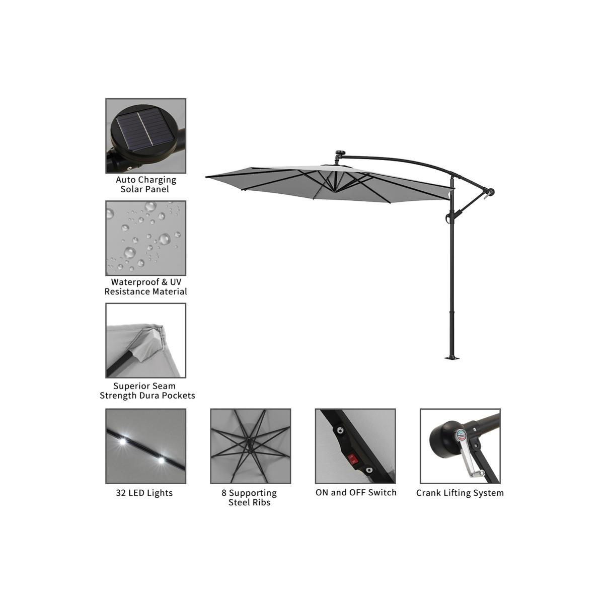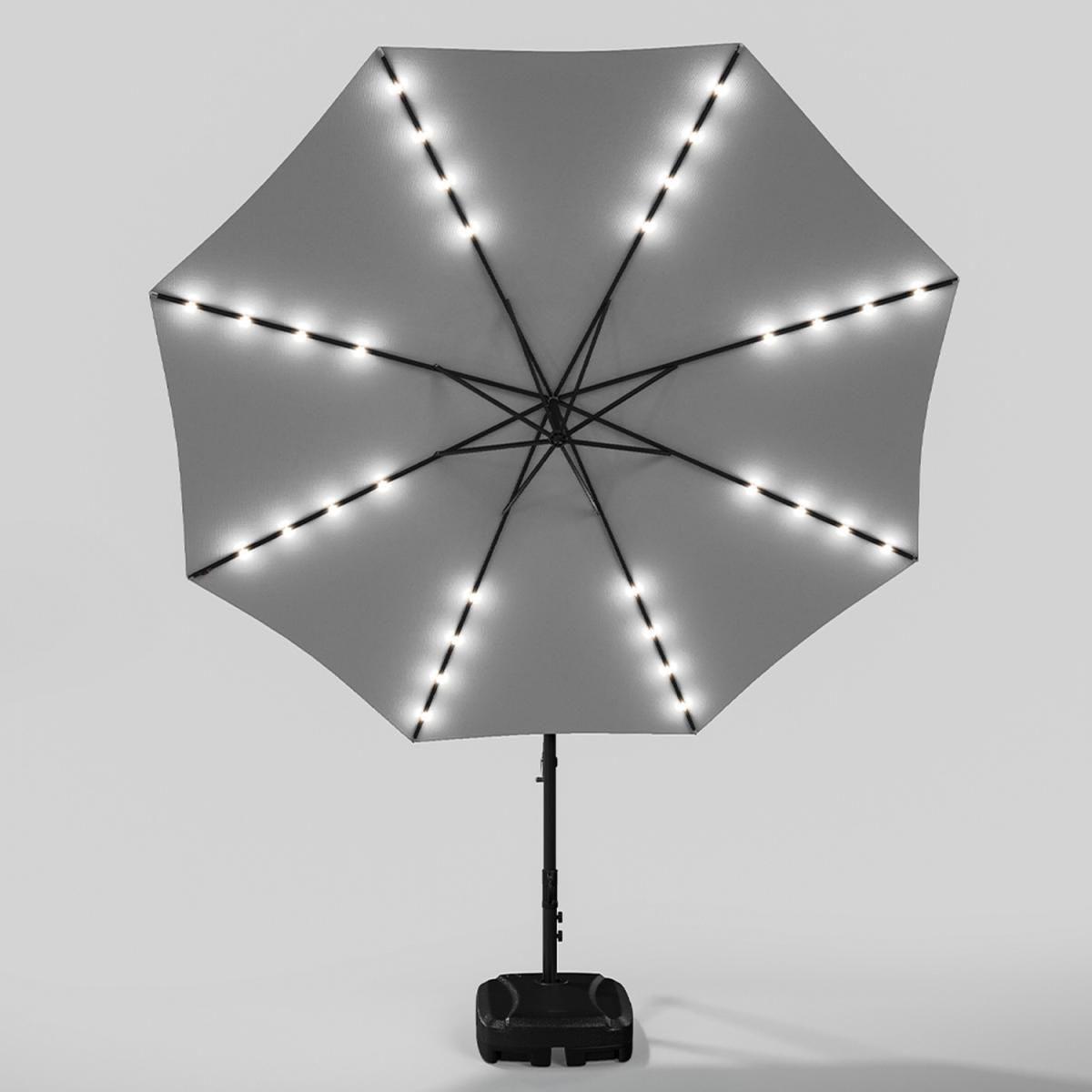 32 Solar Lights Parasol Garden Umbrella With Wheel Base - Light Grey
