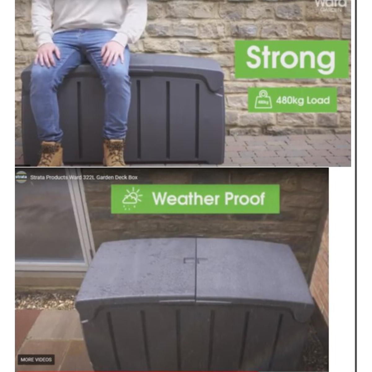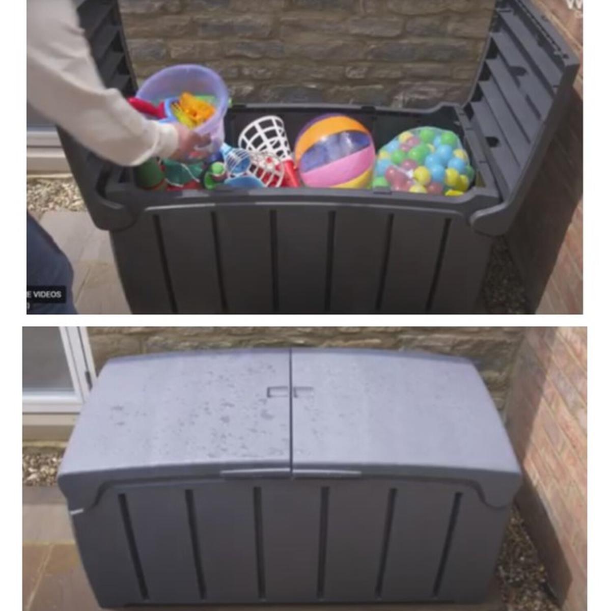 This large capacity garden storage box is perfect for keeping your garden neat and tidy. It is quick and easy to assemble and features a 2 way opening lid for convenience. Handy for storage of garden toys and games, furniture covers, hose pipes, garden tools, pet supplies and more. PLEASE NOTE THAT HEAVY DELIVERY APPLIES FOR THIS ITEM SO POSTCODE EXCLUSIONS WILL APPLY INCLUDING NORTHEN IRELAND, HIGHLANDS AND ISLANDS. EXCLUSIONS INCLUDE ALL BELOW POSTCODES: All BT AB31-AB56, JE1-JE5 GY1-GY10 IM1-IM9 & IM86, IM86 & IM99 TR1-TR27 PA1-PA49 & PA60-PA80 PH1-PH26 & PH30-PH44, PH49 & PH50 IV1-IV32 & IV23, IV40-IV56 & IV63 HS1-HS9 KA11-KA15, KA20, KA31-KA37 & KA48 KW1-KW17 ZE1-ZE3.