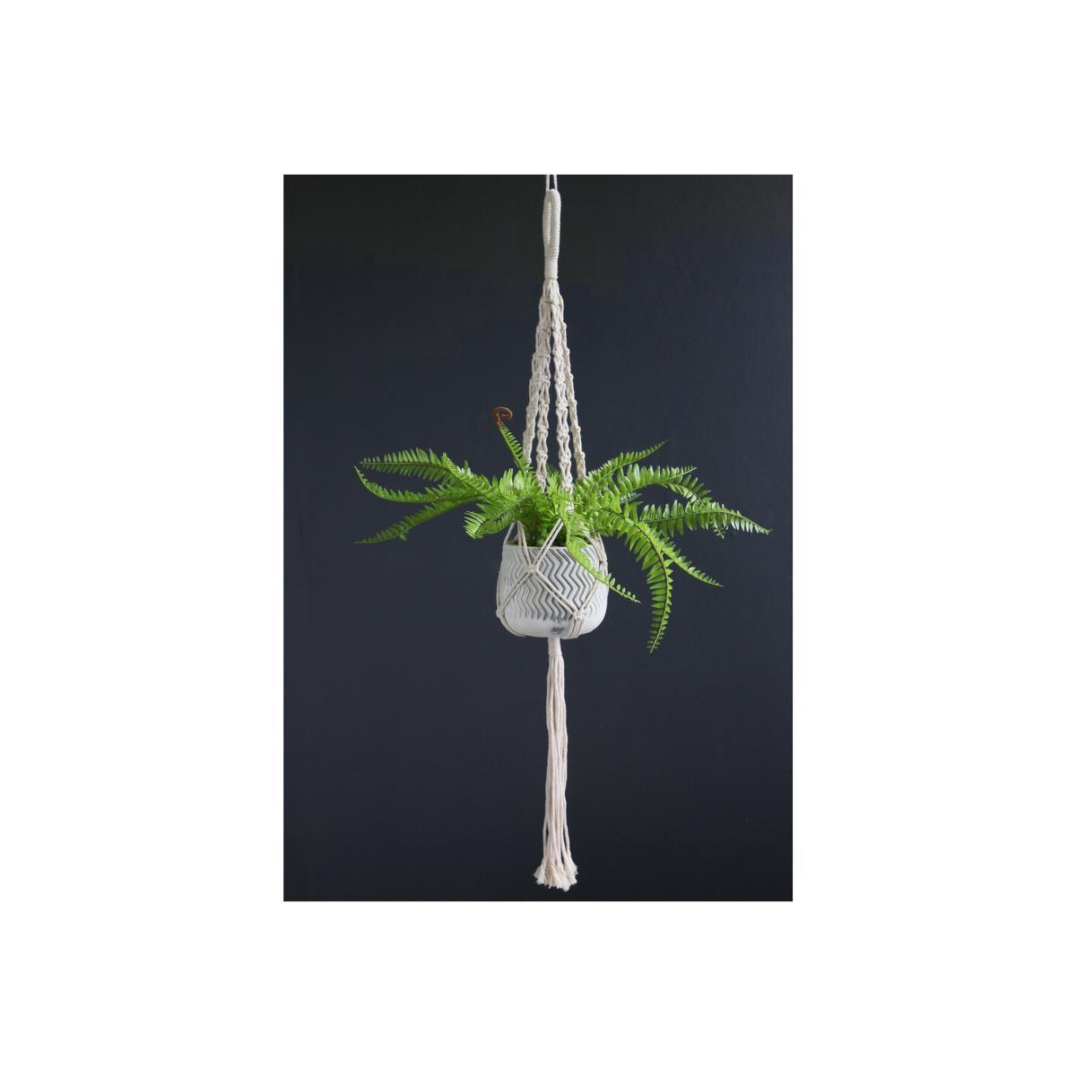 33cm Artificial Fern in Cement Pot & Macramé Hanger