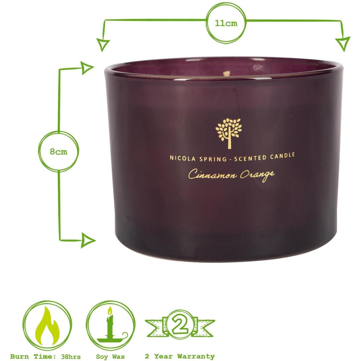 Breathe new life into your home with fresh, fruity, floral aromas from our brand-new range of scented candles and diffusers from Nicola Spring. Bring the warmth and coziness of a snowy chalet, which glows in the darkness from the burning of a roaring fire to your home with the Cinnamon and Orange Scented Candle. A spicy fragrance with citrus notes of orange and tangerine which leads to spicy nuances of cinnamon, ginger and clove, with hints of creamy vanilla, this candle invokes an overall warm and cosy aroma. Crafted from soy wax, a natural and renewable resource, soy wax has a considerably low melting point and beholds a burn time of 38 hours. With a range of scents and sizes available, find the right aromatic fragrance to create the ultimate sense of serenity in your home.