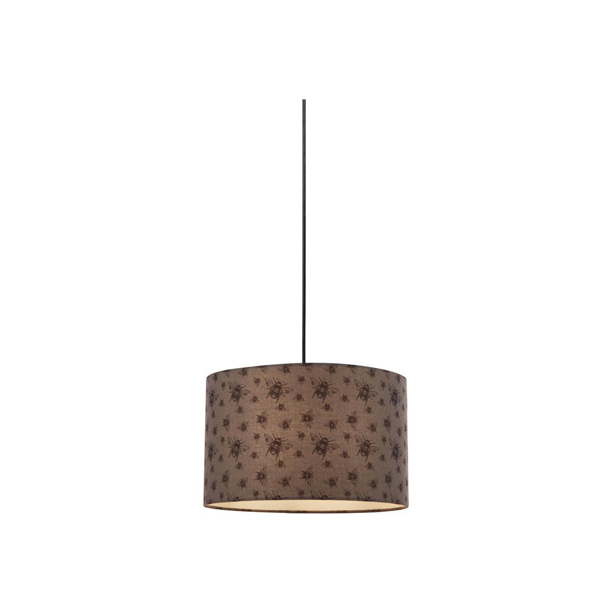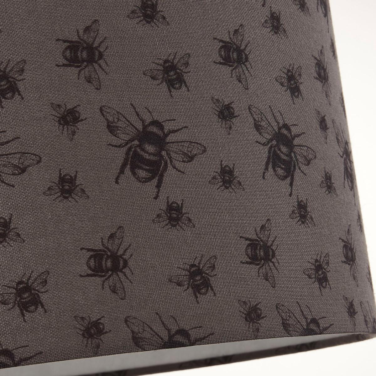 35cm Grey Linen Cylinder Lampshade with Bee Embroidery