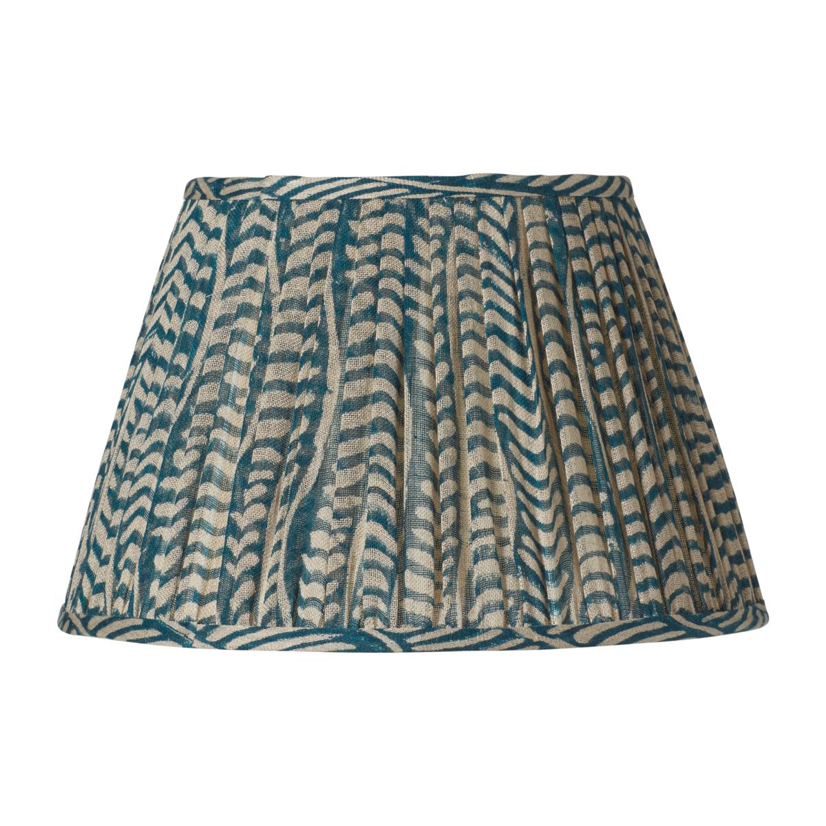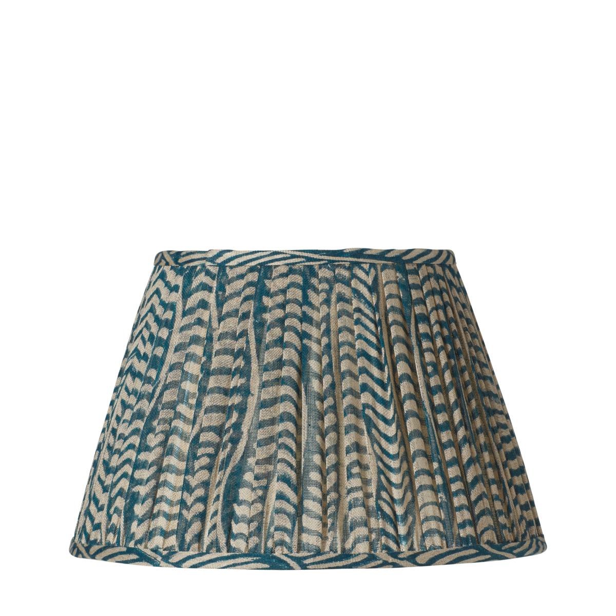 A simple abstract lampshade featuring a fun geometric design, block printed by hand. As this lampshade has been hand-printed, there may be subtle differences in colouration from piece to piece. 35cm Pattani Eclipse Lampshade - Indigo