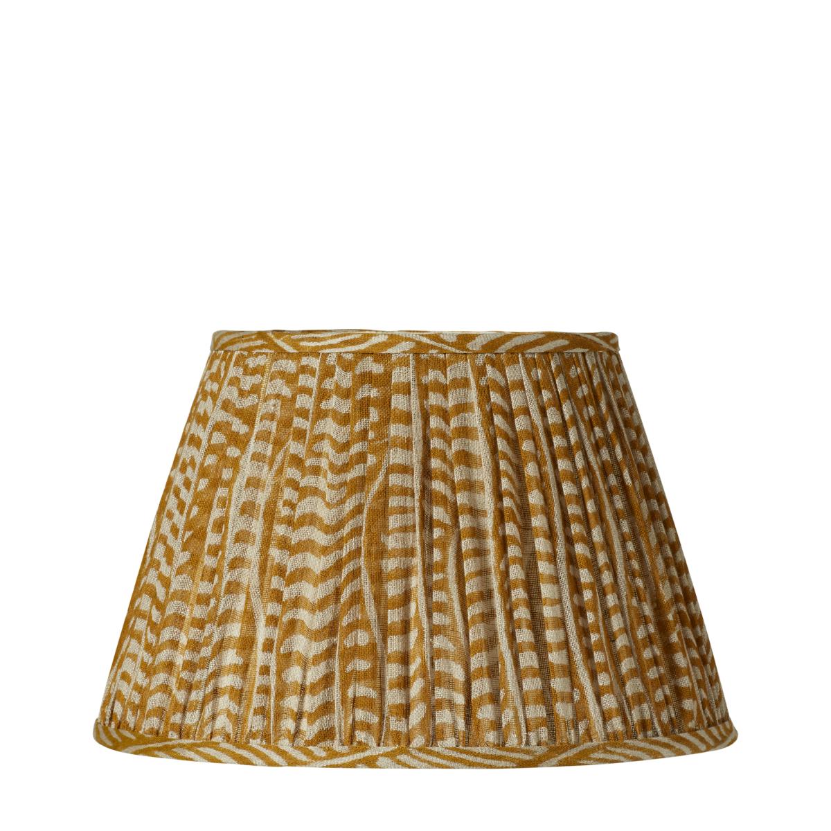 A simple abstract lampshade featuring a fun geometric design, block printed by hand. As this lampshade has been hand-printed, there may be subtle differences in colouration from piece to piece. 35cm Pattani Eclipse Lampshade - Mustard