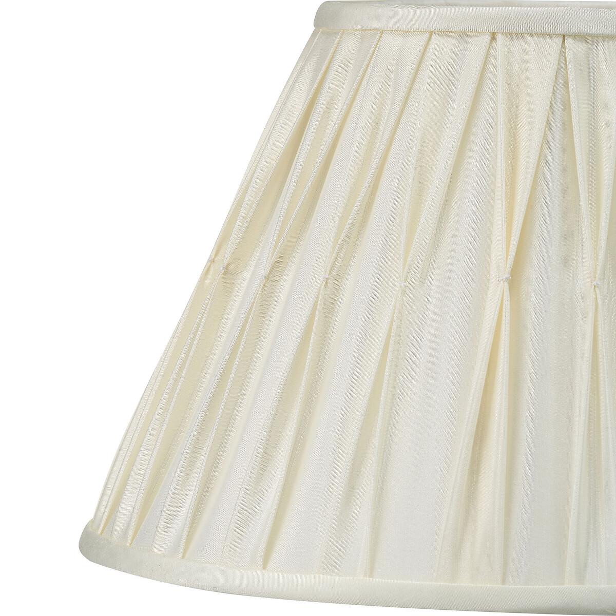 A classic 35cm empire shade created using a silk mix material which has a beautiful pinch pleat detail. Finished in a neutral colour and soft balloon lining, this shade will sit beautifully on most base styles creating a timeless classic. Available in Silver & Cream. Available Sizes: 15cm, 20cm 25cm, 30cm, 35cm, 40cm & 50cm.