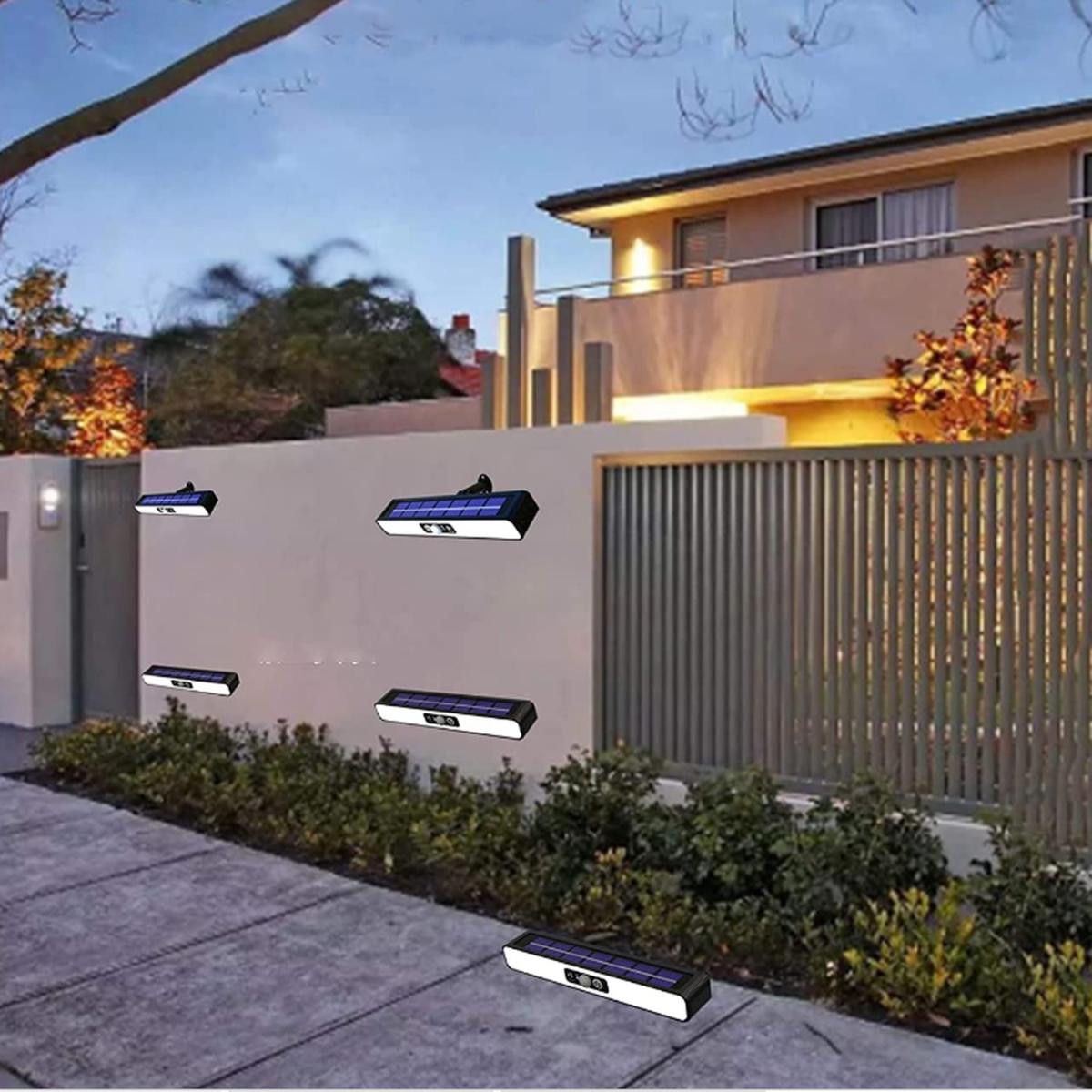 The lights are equipped with solar panels that charge and turn off during the day and turn on at night. The product have an adjustable angle of 120 degrees up and down on the detachable bracket. It is perfect choice for outdoor. It made from a high quality ABS, and waterproof level is IP65. You can enjoy a choice between a warm white or a cold white light. The size of product is 25mm x 200mm x 40.5mm.