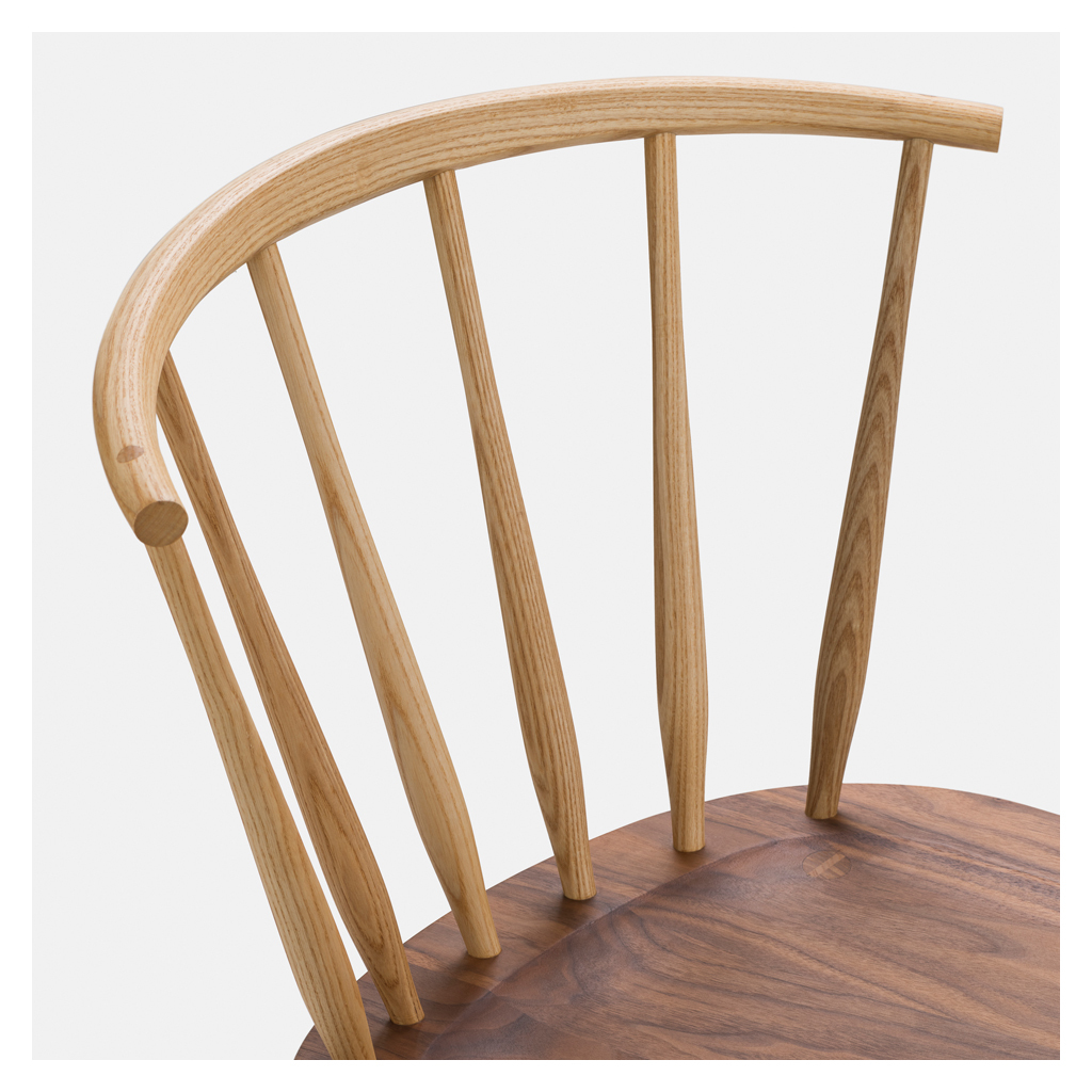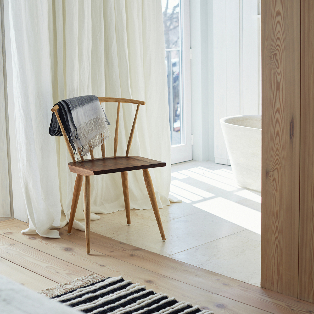 Designed by Matthew Hilton and created in Portugal by De La Espada’s craftsmen, the Ibstone Windsor Chair is crafted using traditional techniques with an ash and walnut construction. Named after a neighbouring village of High Wycombe, Buckinghamshire, where the Windsor Chair was originally designed, the Ibstone Windsor Chair was designed to further evolve this iconic silhouette. Accented with a black walnut seat on a European ash frame, the Ibstone Windsor Chair is finished with Danish oil, distinguished with a wedge tenon detail where the leg intersects with the top of the seat, awarding it classic construction, alongside a contemporary aesthetic.